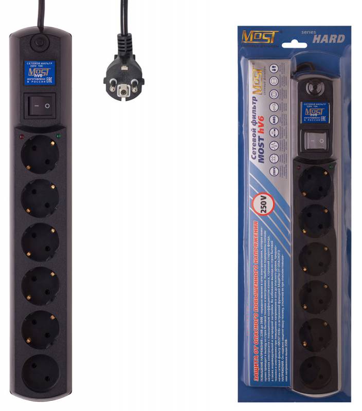 Сетевой фильтр Most HV6 5м 6 розеток черный (коробка) [MOST HV6 5М ЧЕР]