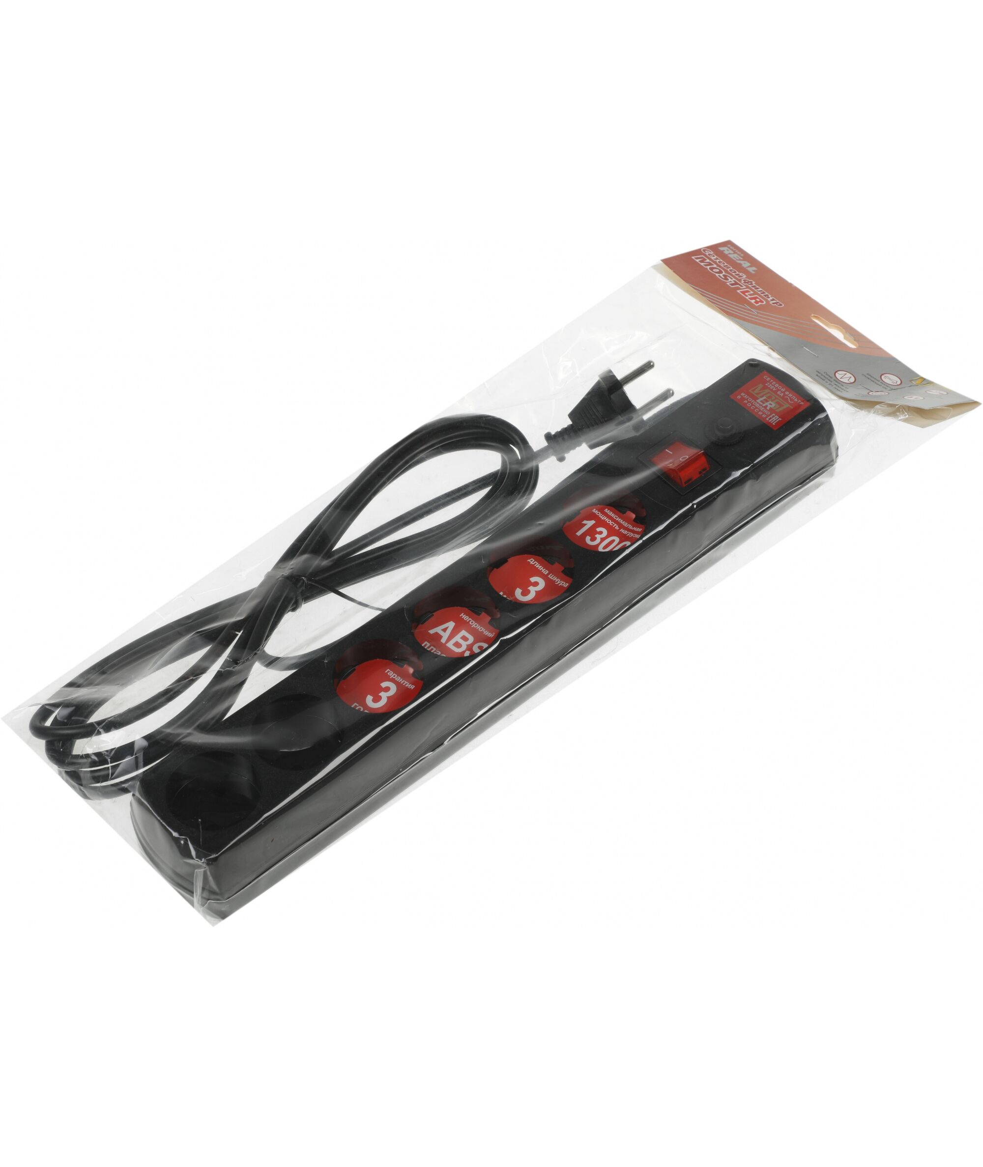 Сетевой фильтр Most LR 3м (6 розеток) черный (коробка)