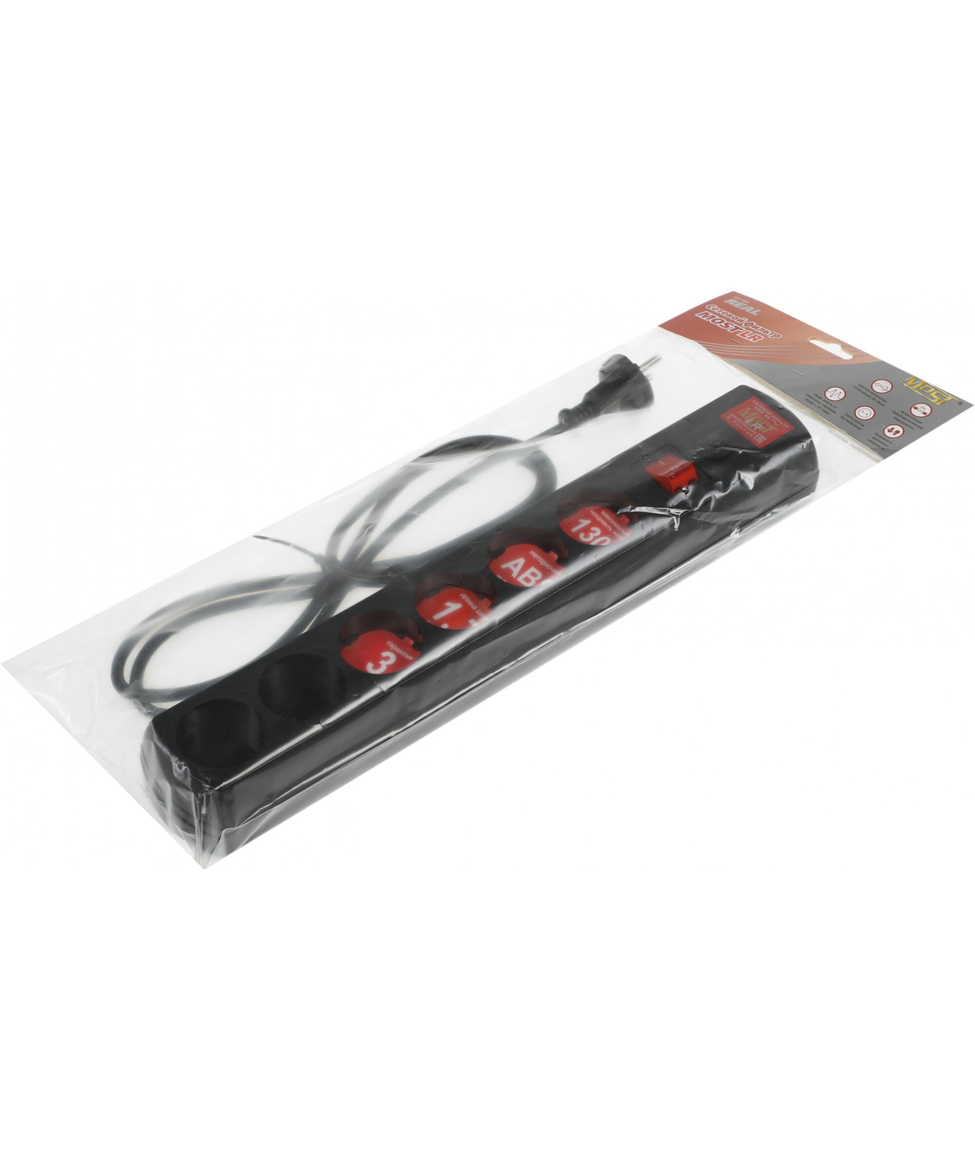 Сетевой фильтр Most LR 1.7м 6 розеток черный (коробка)