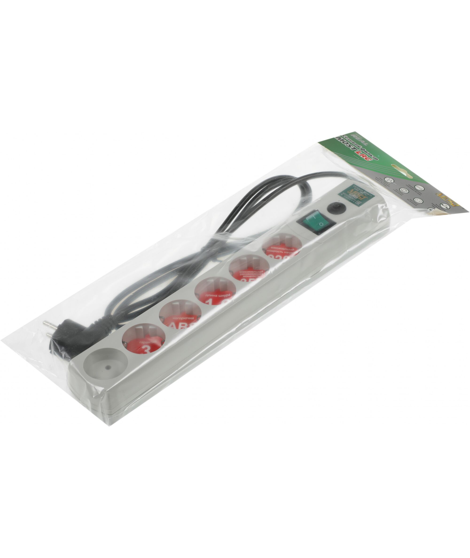Сетевой фильтр Most LRG 1.6м 6 розеток белый (пакет ПЭ)