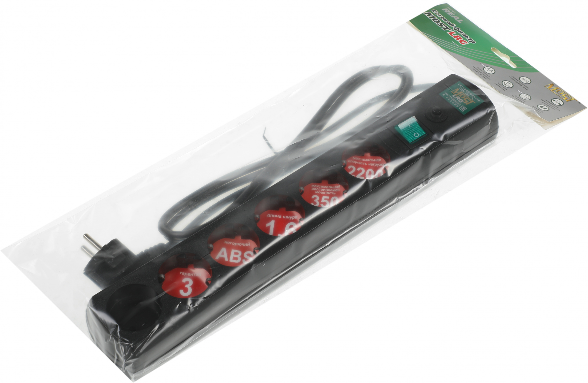 Сетевой фильтр Most LRG 1.6м 6 розеток черный (пакет ПЭ) [MOST LRG 6-1.6-Ч]