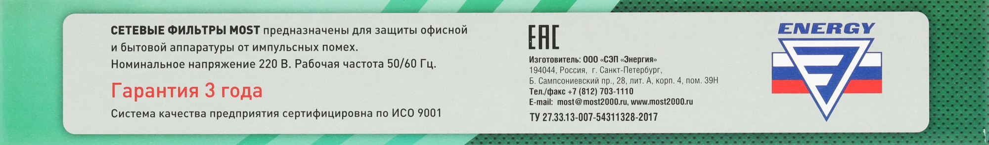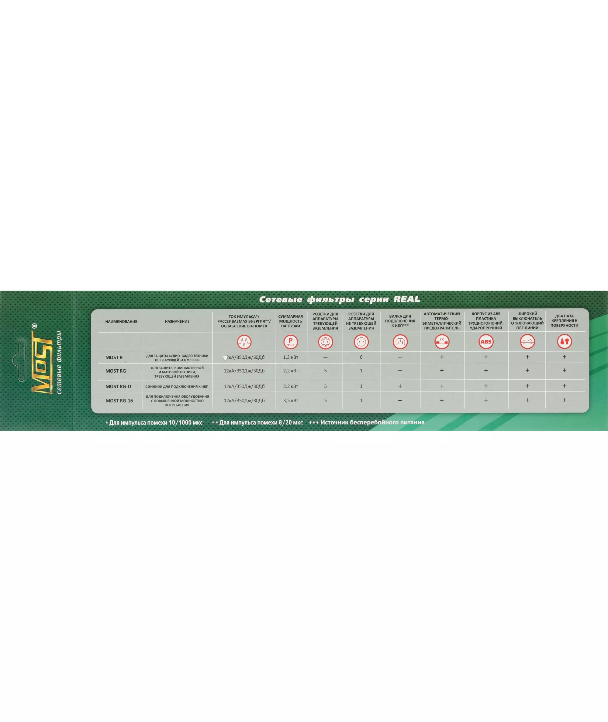 Сетевой фильтр Most RG 3м (6 розеток) черный (коробка)