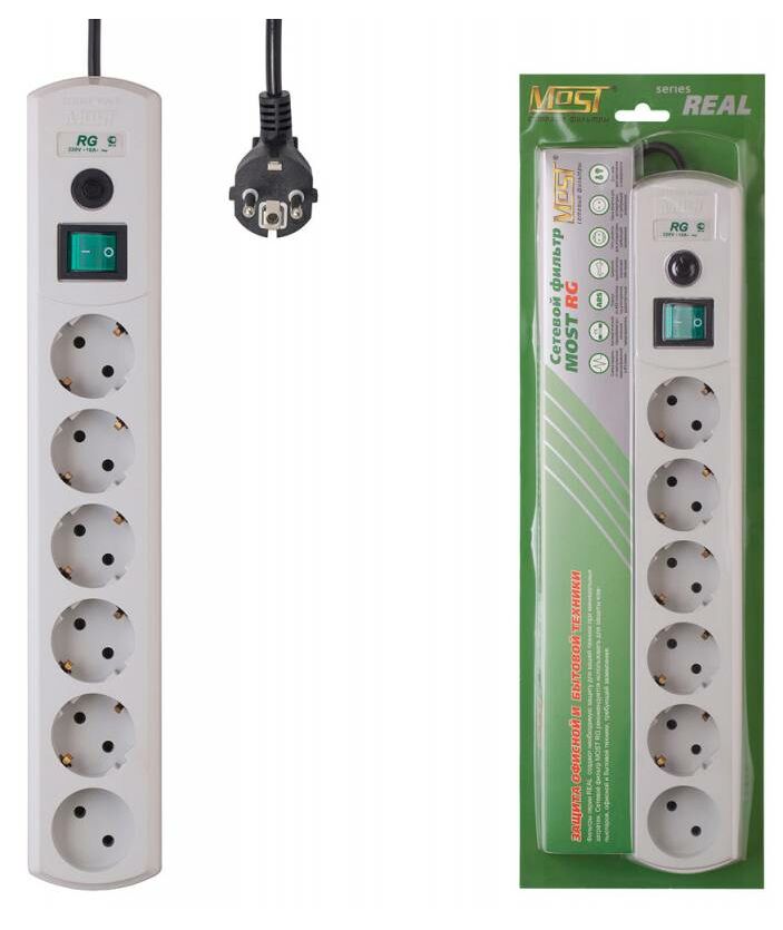 Сетевой фильтр Most RG 10м (6 розеток) белый (коробка)
