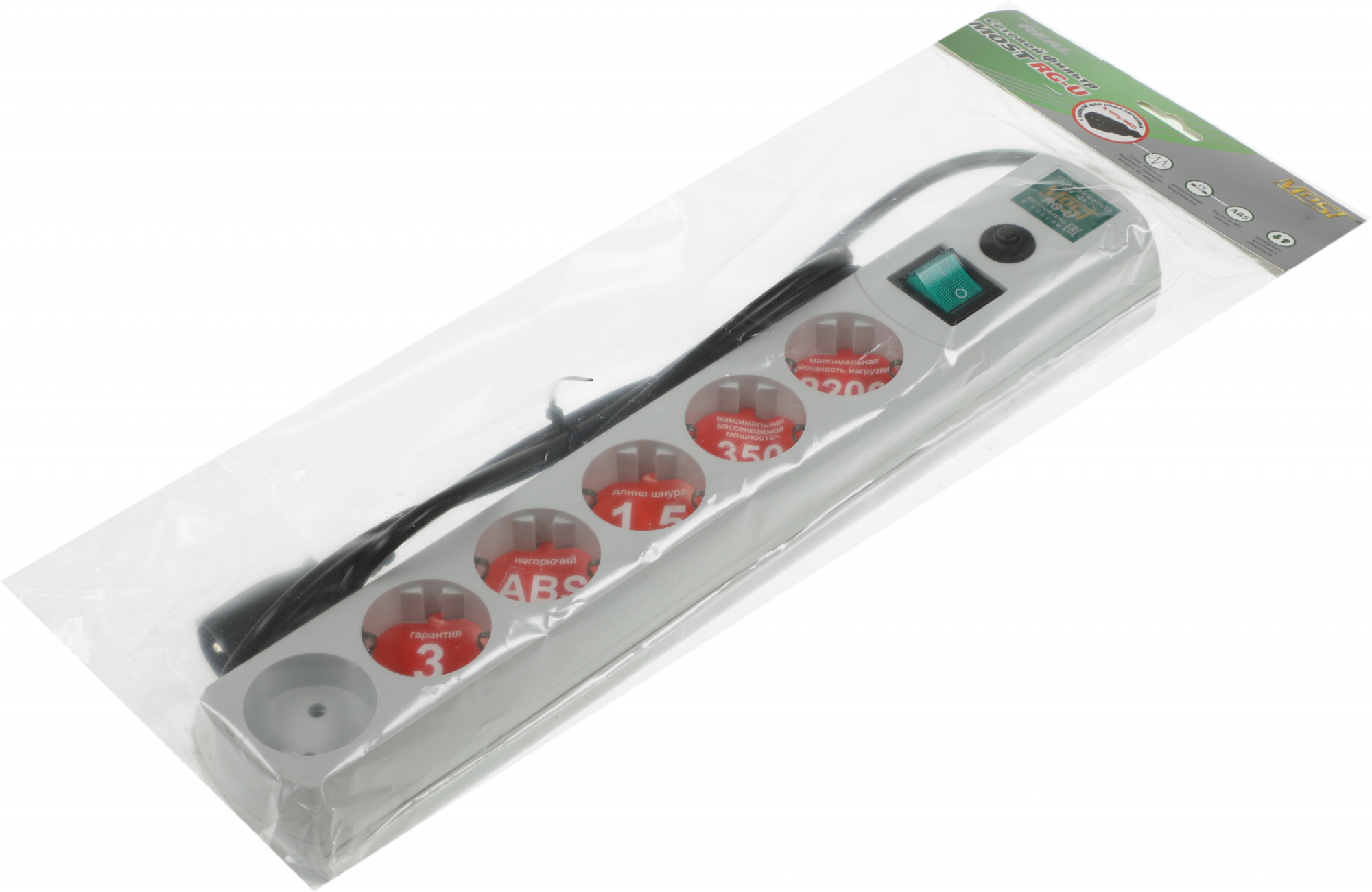 Сетевой фильтр Most RG-U 1.5м (6 розеток) белый (коробка)