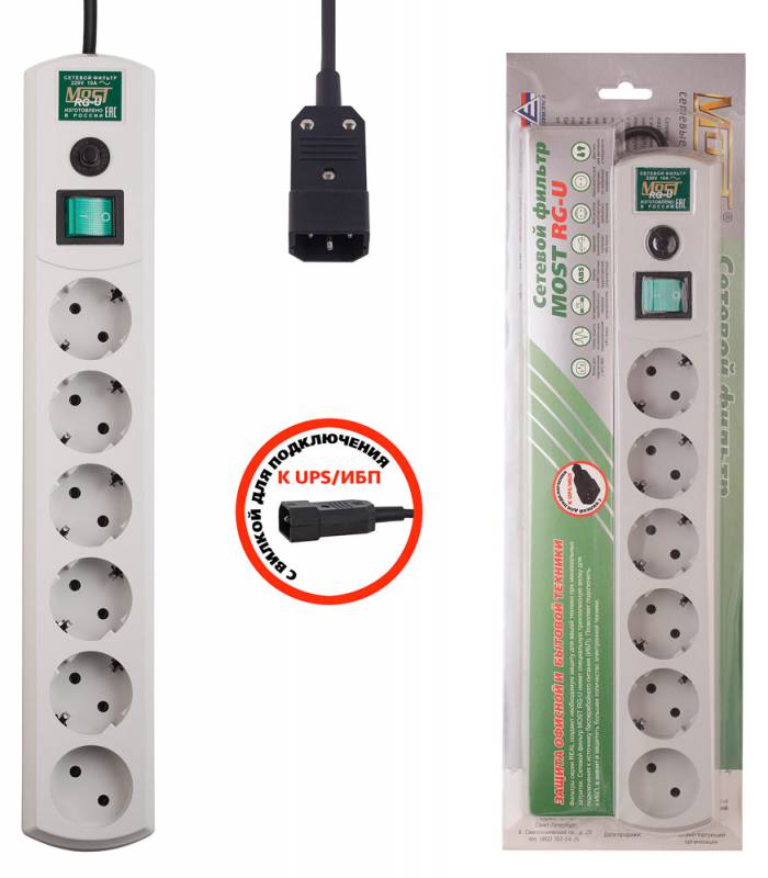 Сетевой фильтр Most RG-U 3М 3м (6 розеток) белый (коробка)