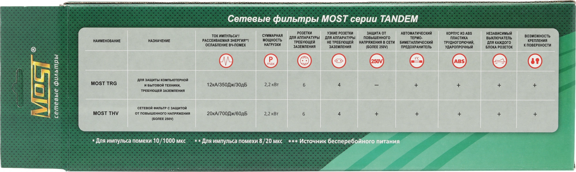 Сетевой фильтр Most TRG-Ч-2 2м (10 розеток) черный (коробка)