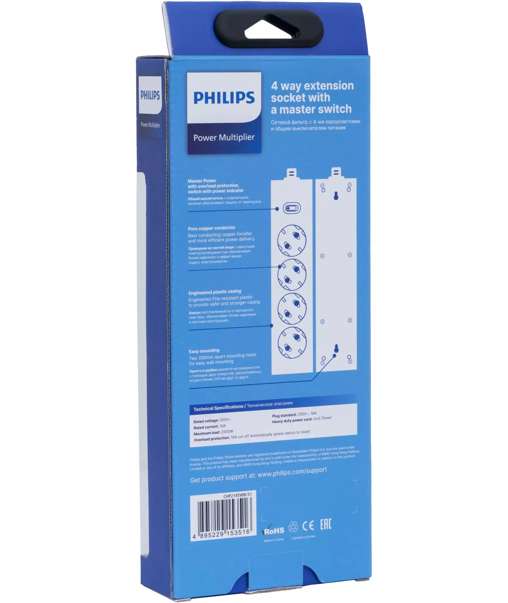 Сетевой фильтр PHILIPS CHP2145WB/51 3м (4 розетки) белый (коробка)