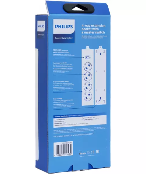 Сетевой фильтр PHILIPS CHP2145WC/51 5м (4 розетки) белый (коробка)