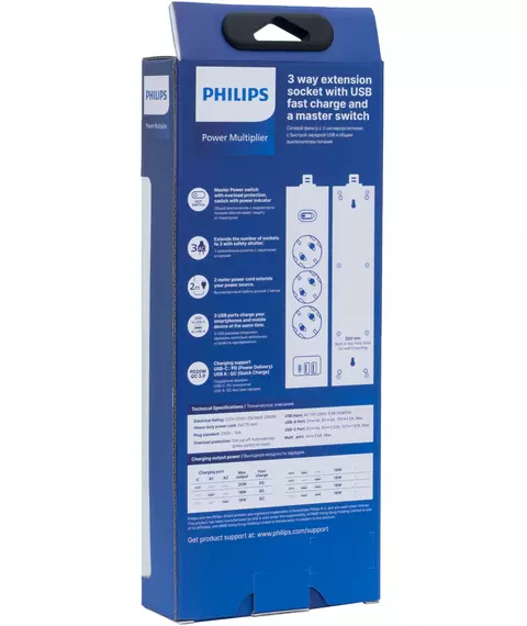 Сетевой фильтр PHILIPS CHP4336WB/51 3м (3 розетки) белый (коробка)