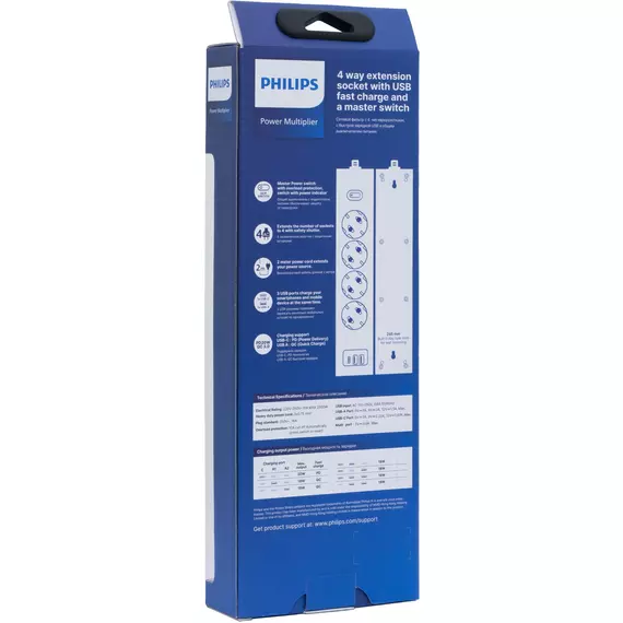 Сетевой фильтр PHILIPS CHP4346WA/51 2м (4 розетки) белый (коробка)