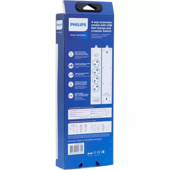 Сетевой фильтр PHILIPS CHP8246BB/51 3м (4 розетки) черный (коробка)
