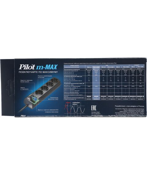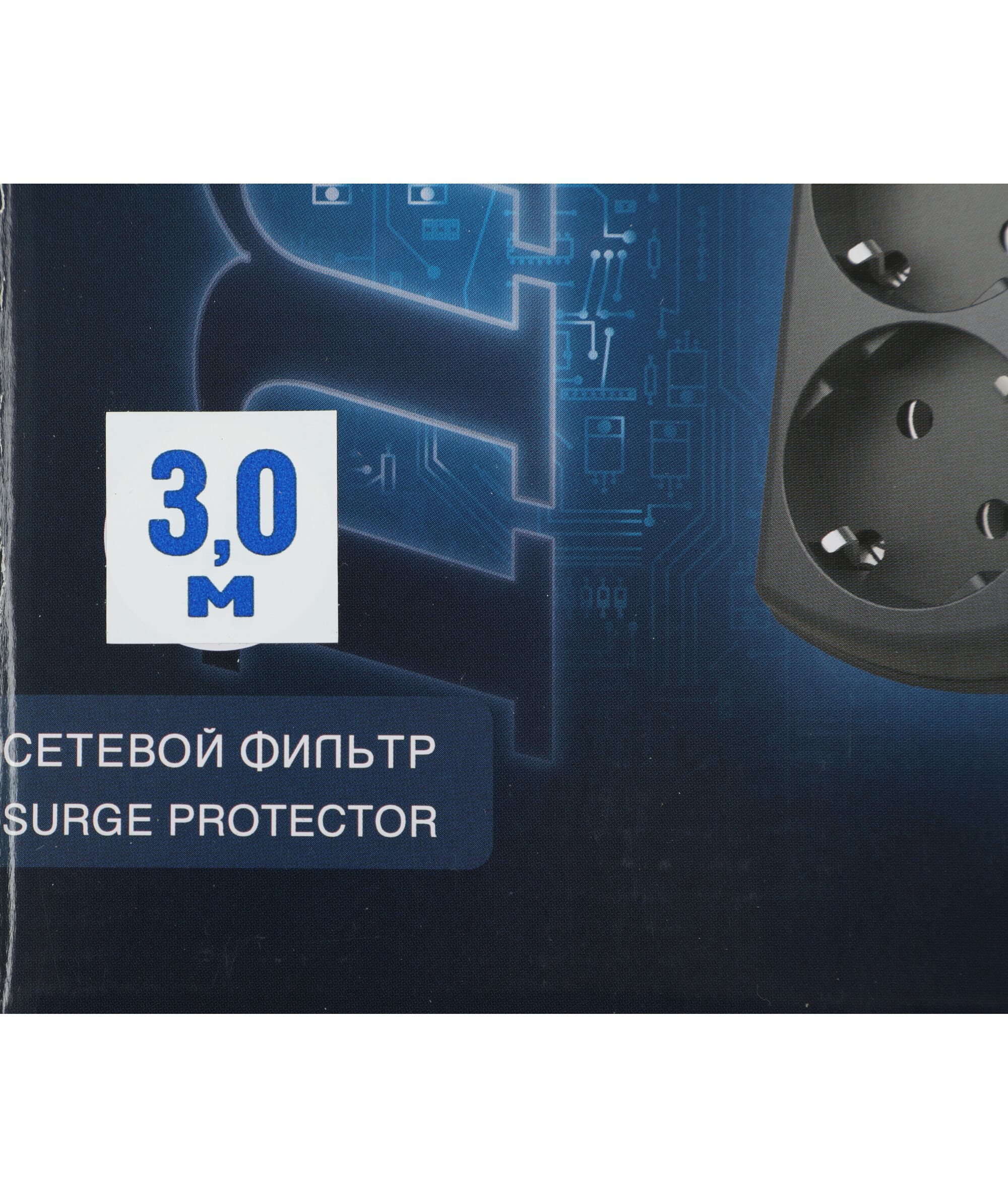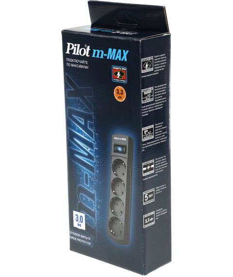 Сетевой фильтр Pilot m-MAX 3м (4 розетки) серый (коробка) [144]