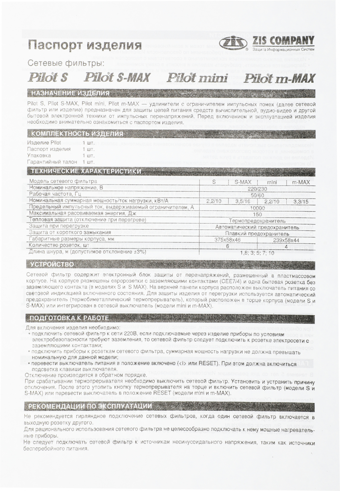 Сетевой фильтр Pilot m-MAX 7м 4 розетки серый (коробка) [146]