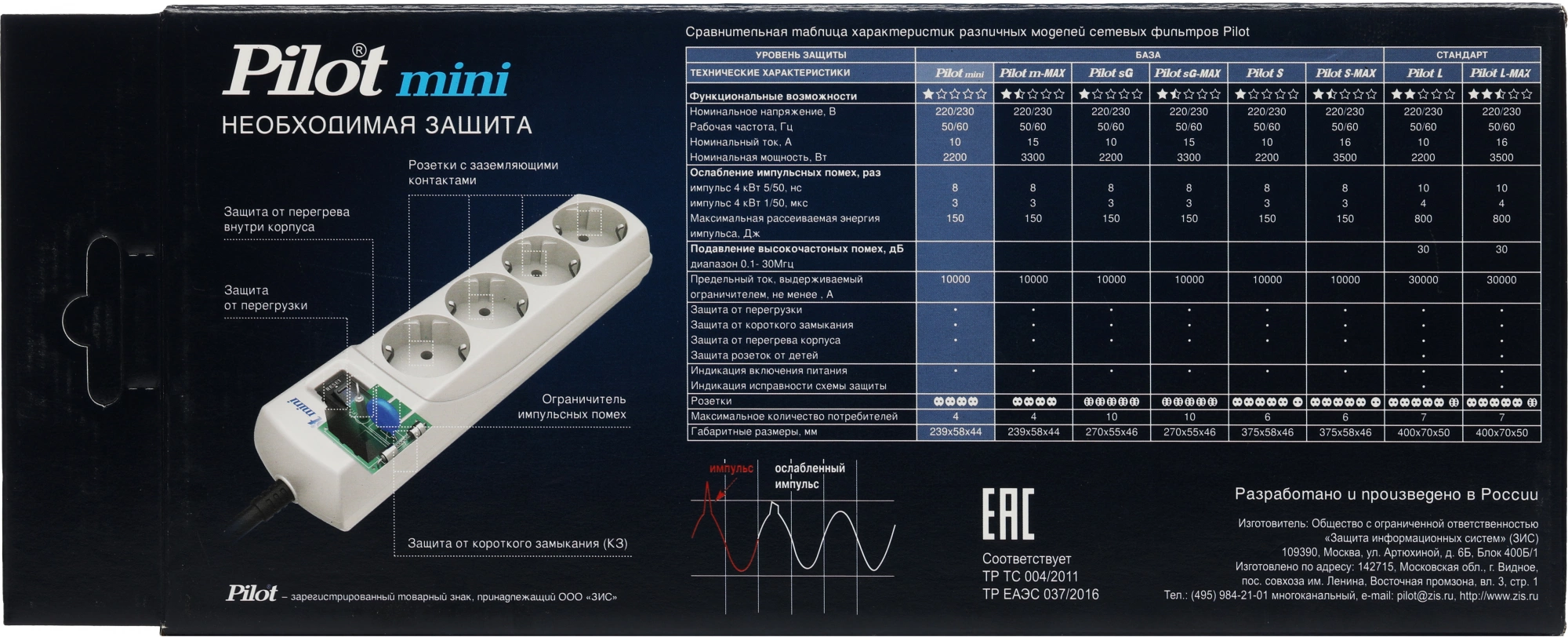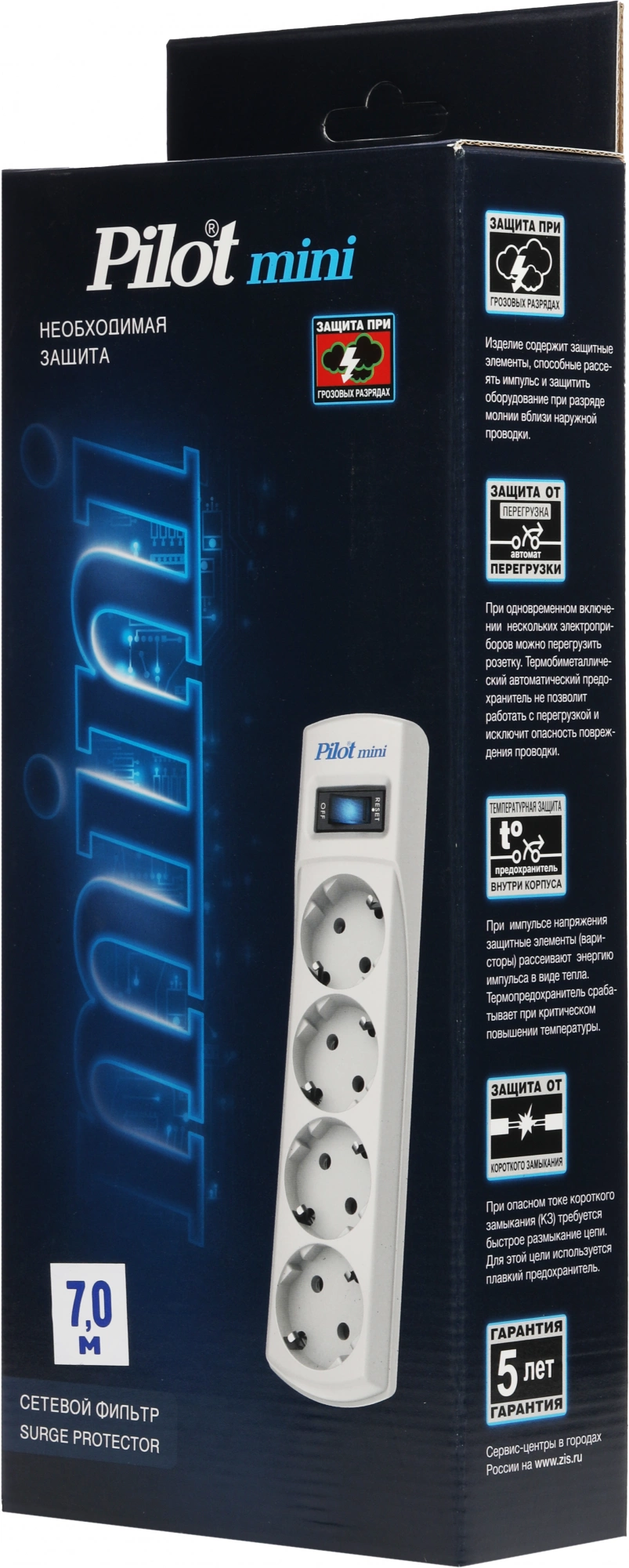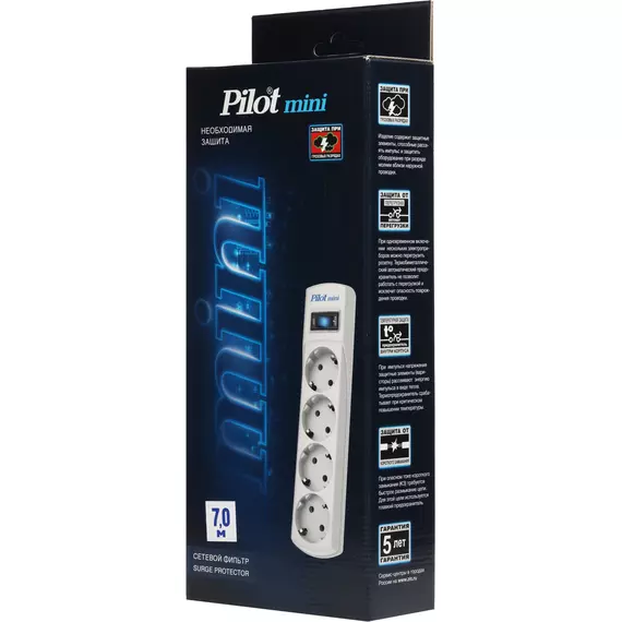Сетевой фильтр Pilot mini 7м (4 розетки) белый (коробка) [130]