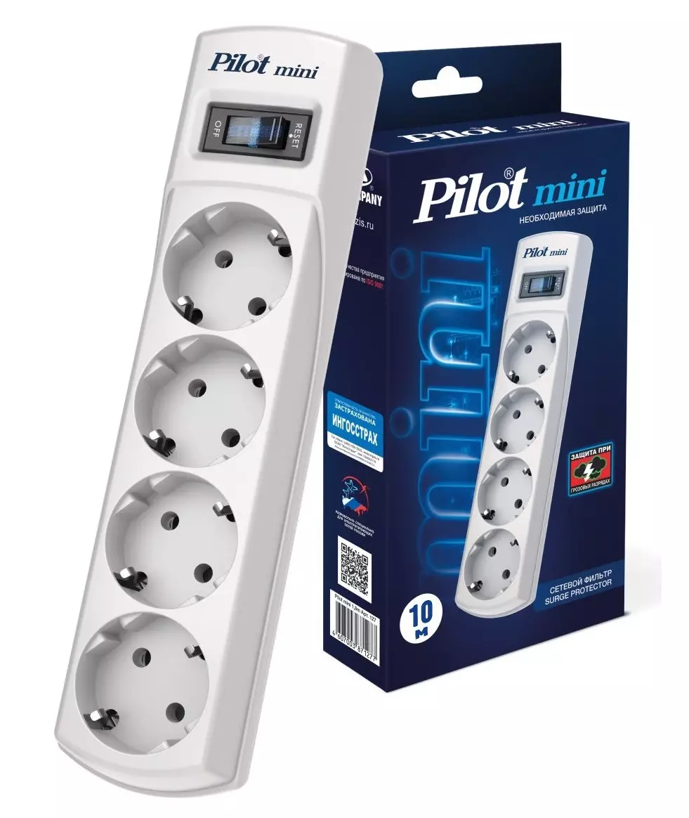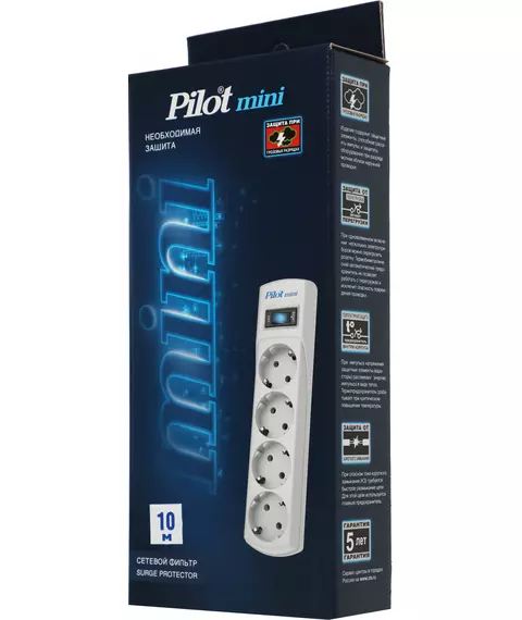 Сетевой фильтр Pilot mini 10м (4 розетки) белый (коробка) [131]