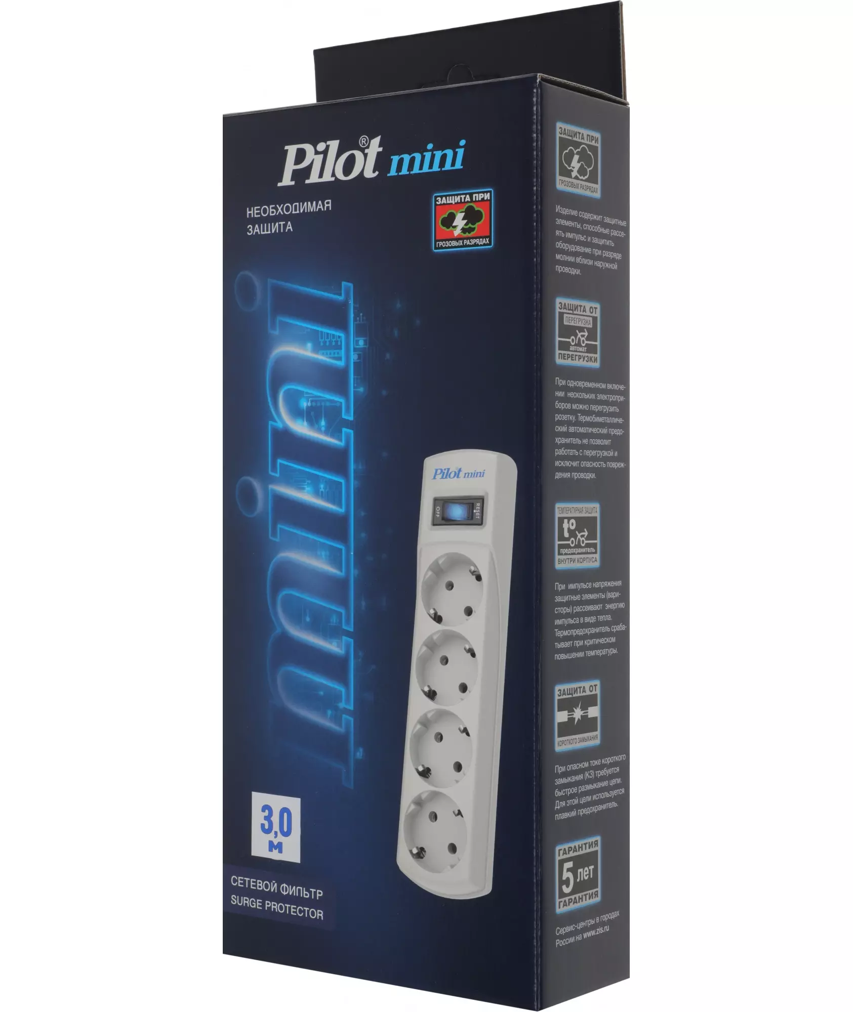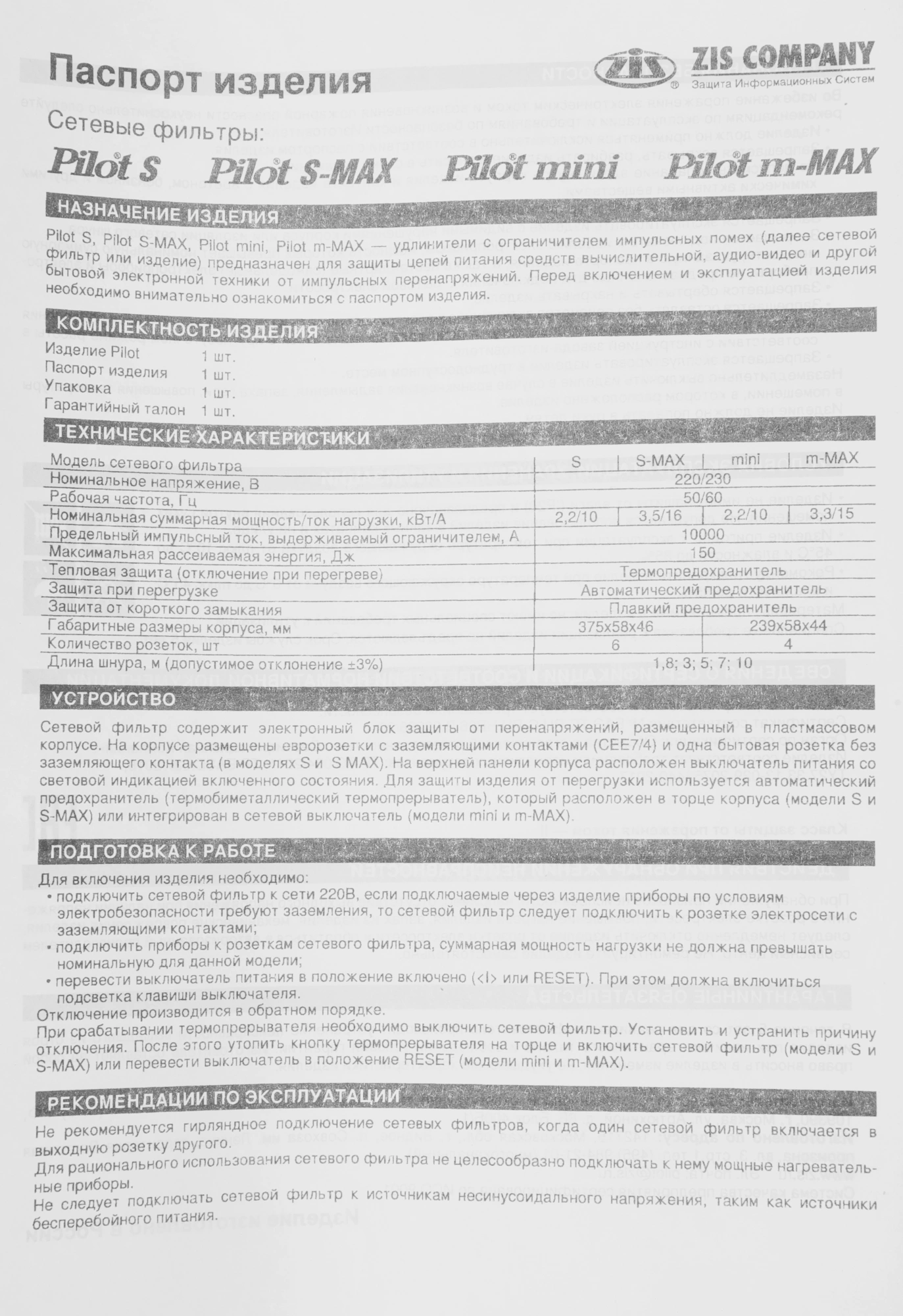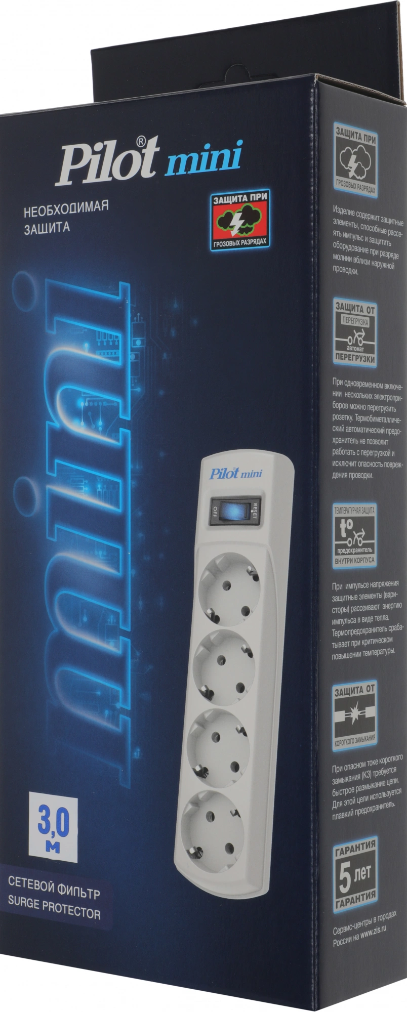 Сетевой фильтр Pilot mini 3м 4 розетки белый (коробка) [128]