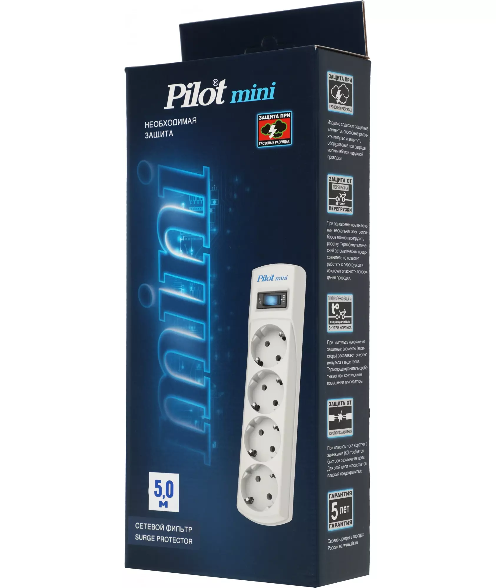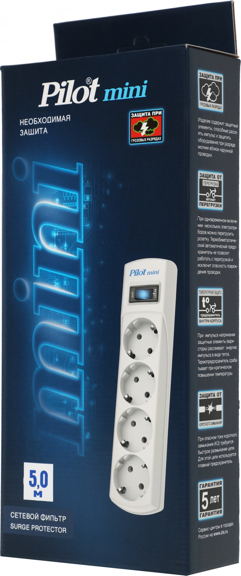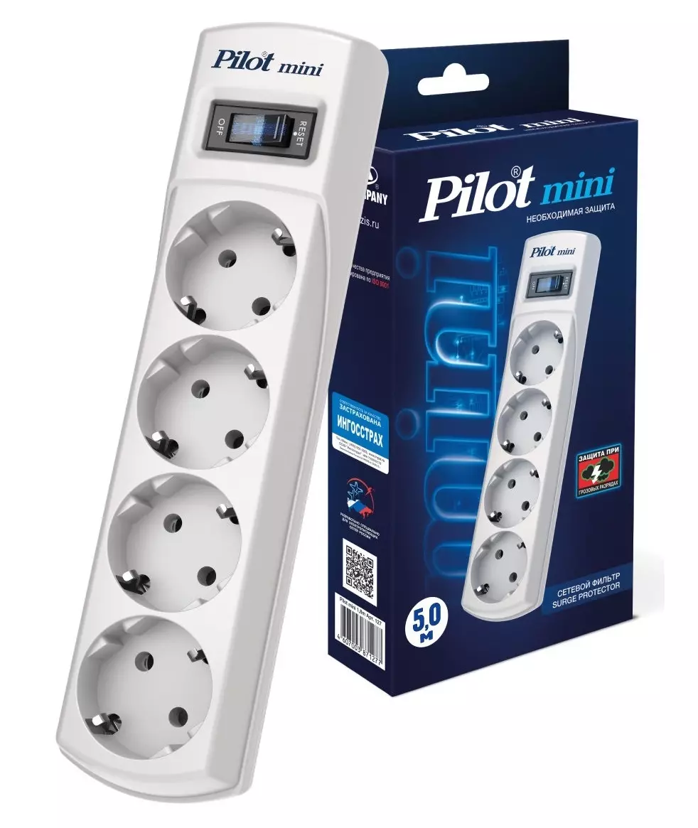 Сетевой фильтр Pilot mini 5м 4 розетки белый (коробка) [129]