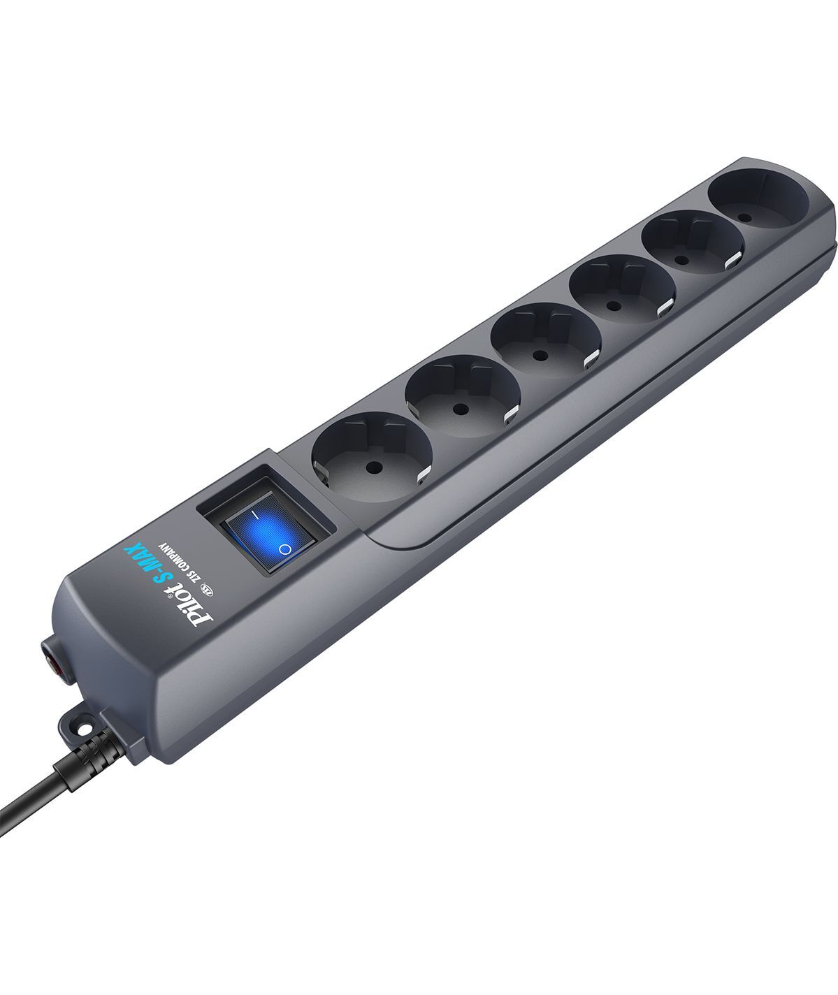 Сетевой фильтр Pilot S-MAX 1.8м (6 розеток) серый (коробка) [035]