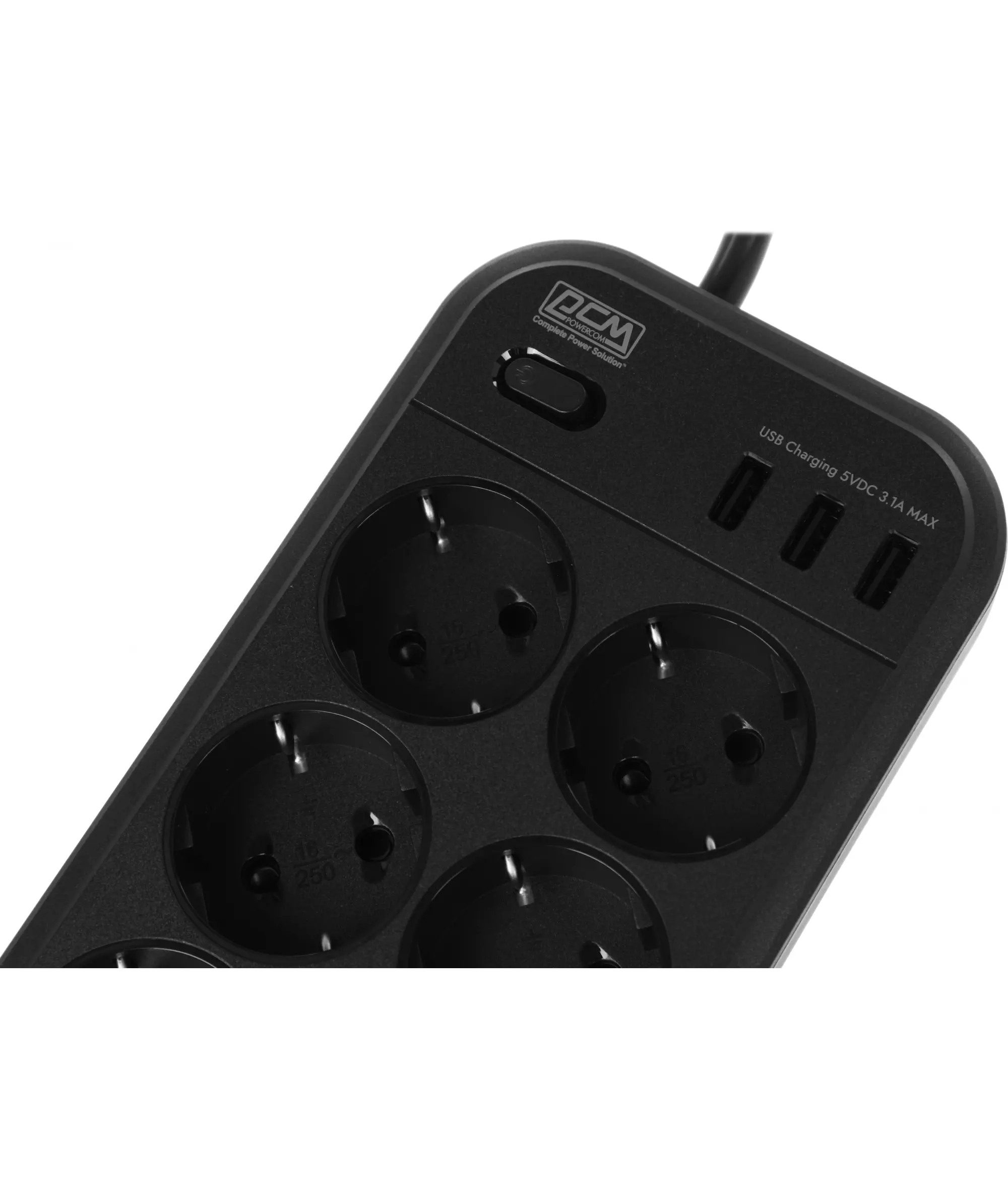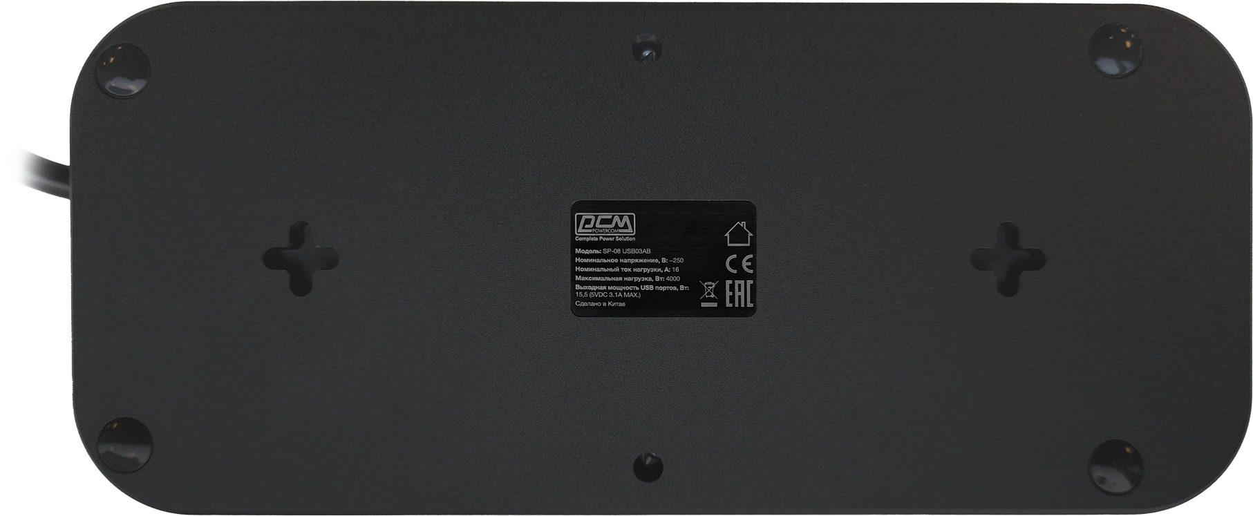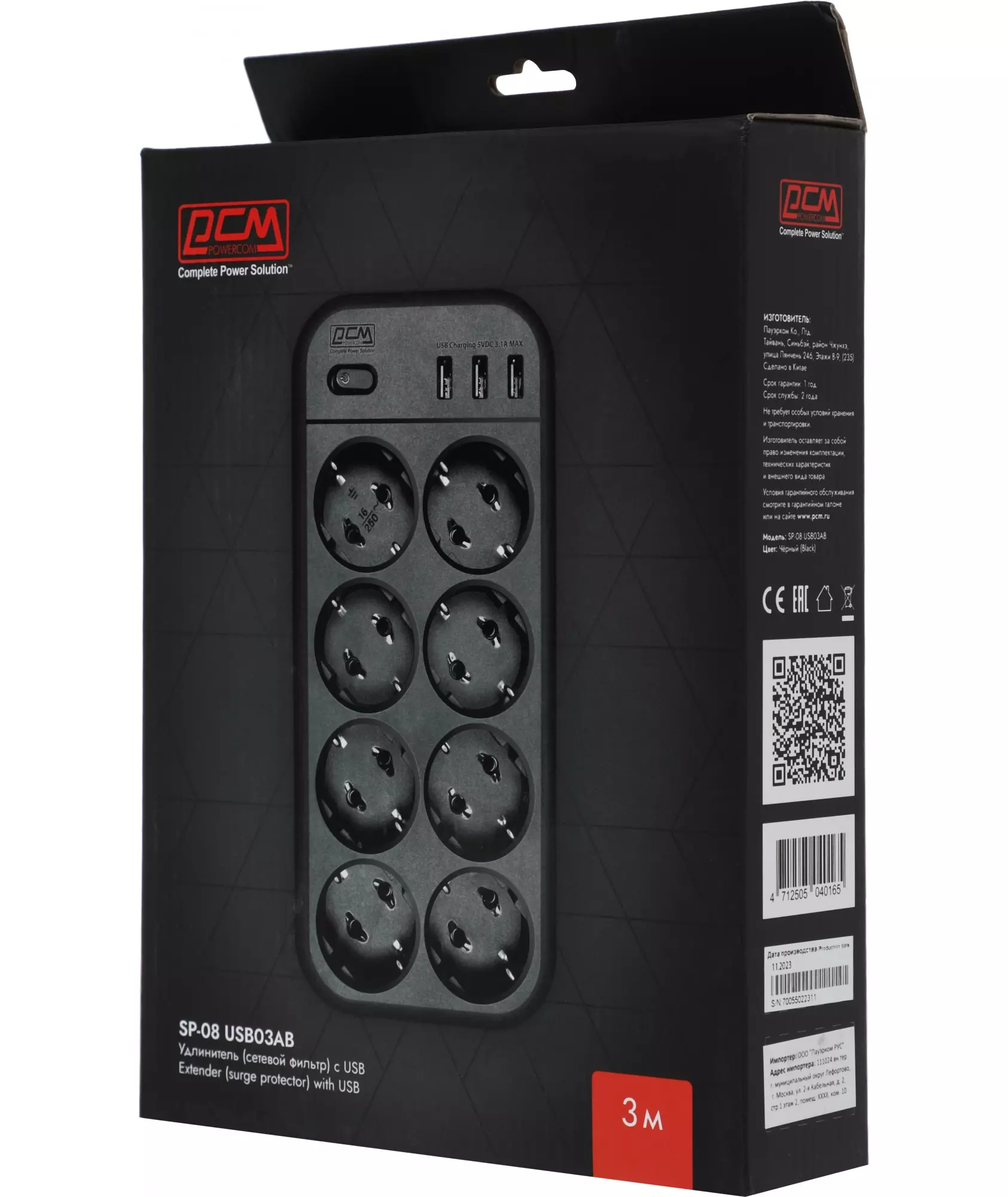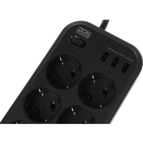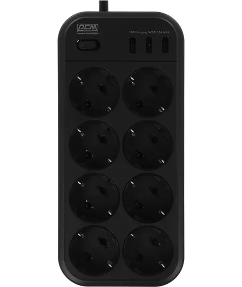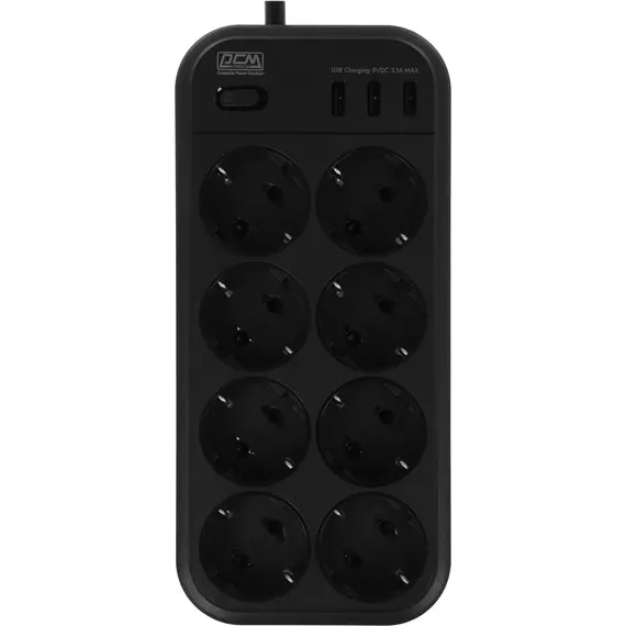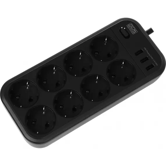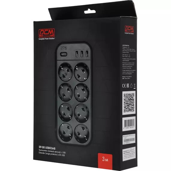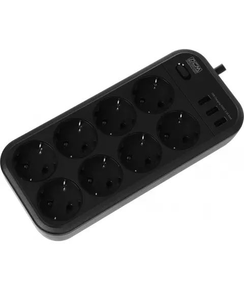 Сетевой фильтр PowerCom SP-08 USB03AB 3,0М 3м (8 розеток) черный (коробка)