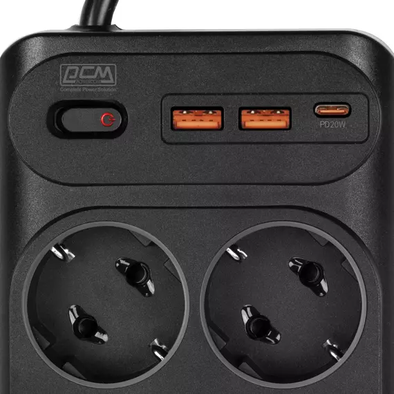 Сетевой фильтр PowerCom SP-10 USB2A1СB 3.0М 10 розеток черный (коробка)