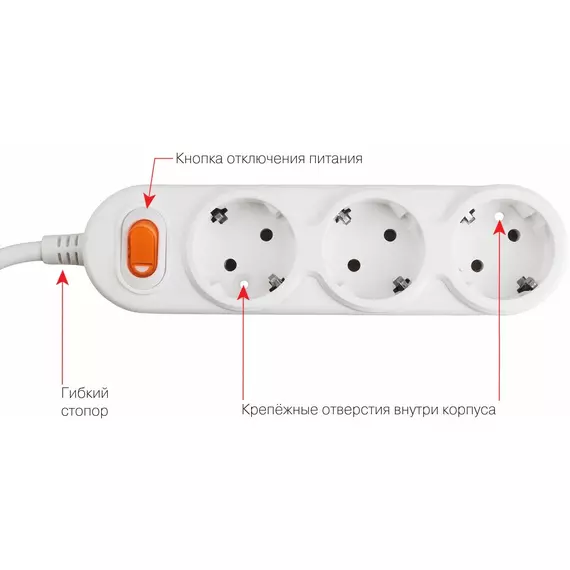 Сетевой удлинитель Powercube PC-1-5M 5м (3 розетки) белый (коробка)