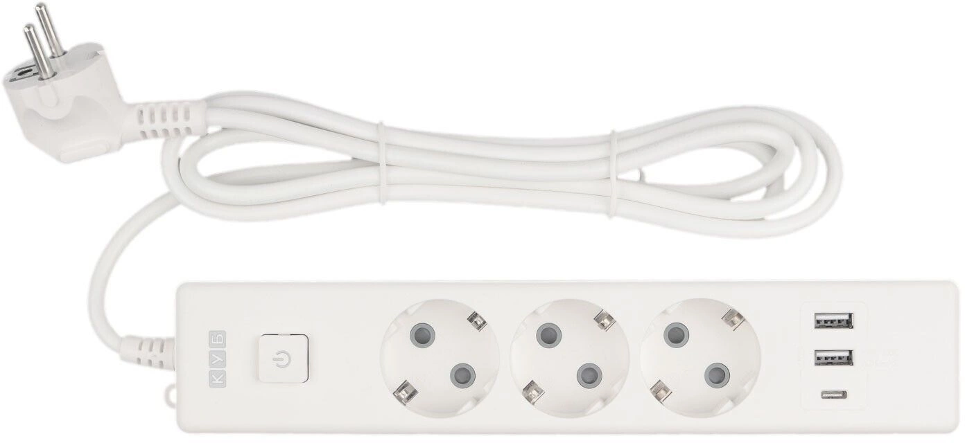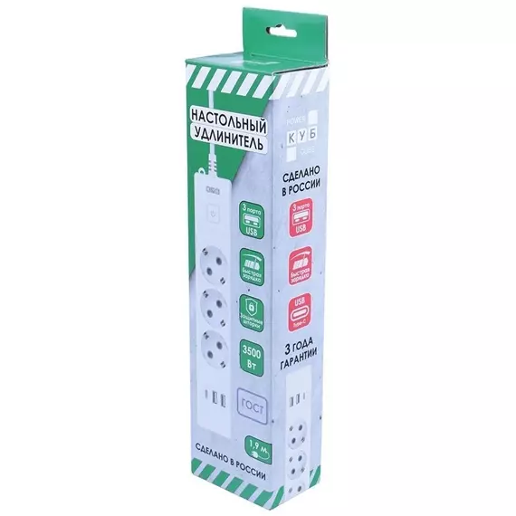 Сетевой удлинитель Powercube PC-5-2M 1.9м (3 розетки) белый (коробка)