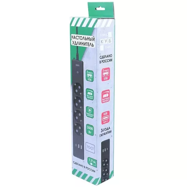 Сетевой удлинитель Powercube PC-7B-2M 1.9м (4 розетки) черный (коробка)