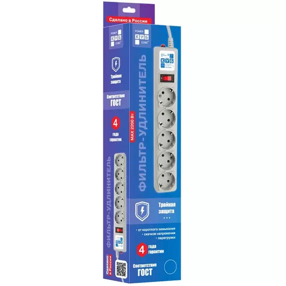 Сетевой фильтр Powercube SPG-B-15-GREY 5м (5 розеток) серый (коробка)