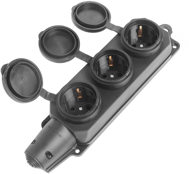 Розетка трёхместная SmartBuy SBE-16-3-00-R каучуковая, 16 A, 230 В, 2P + PE, с заглушками, IP 44