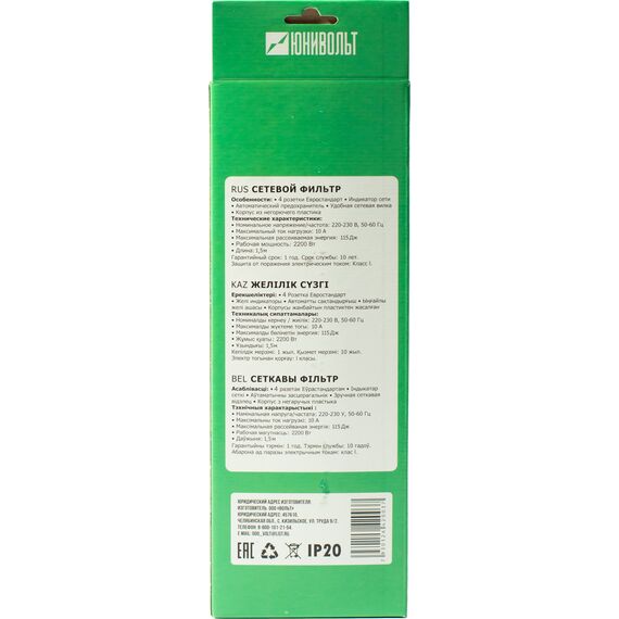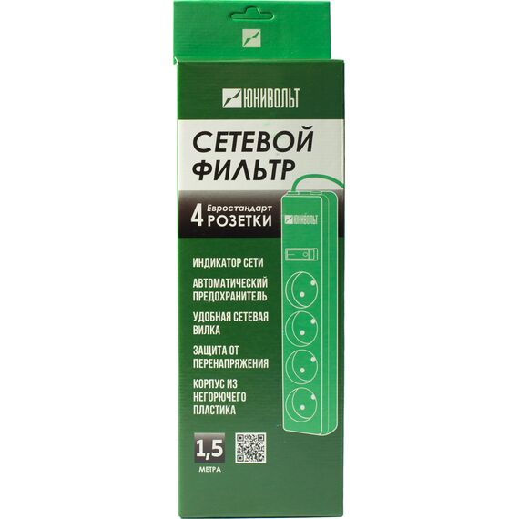 Сетевой фильтр Юнивольт 00-00000386 1.5м (4 розетки) белый (коробка)