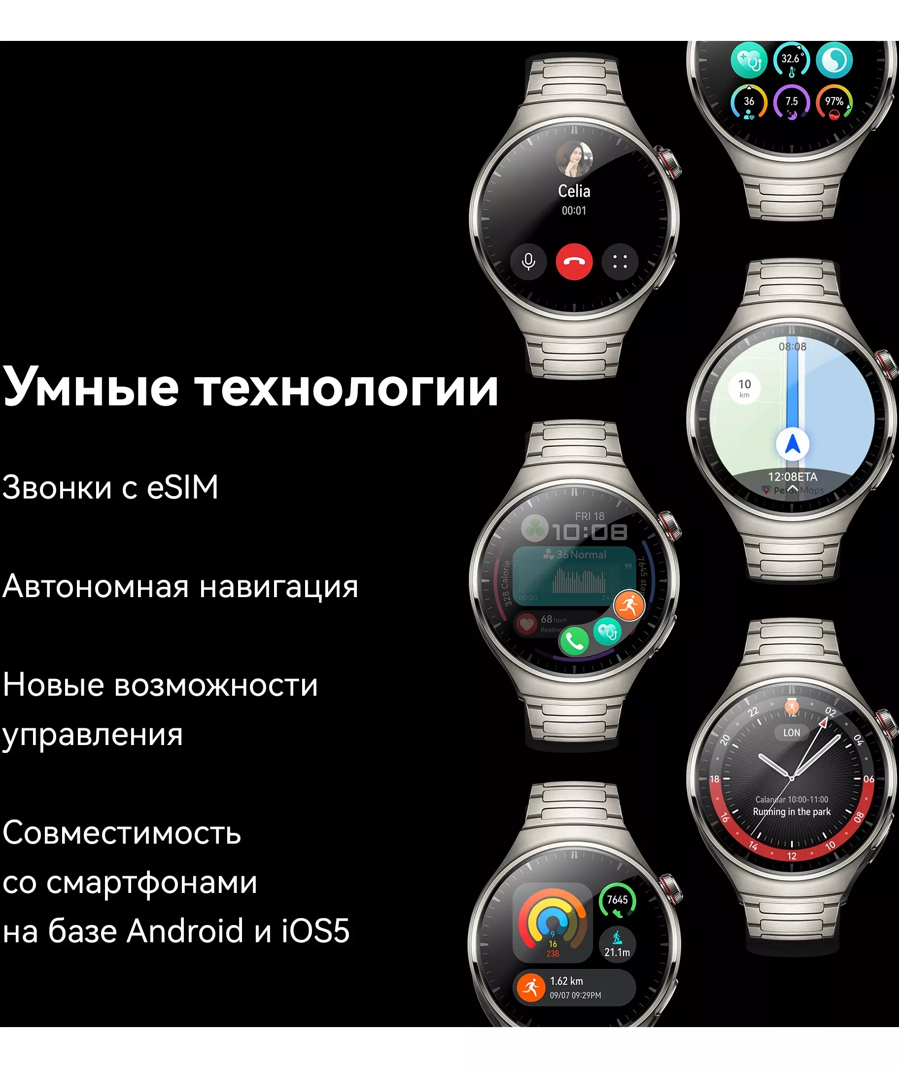 Смарт-часы HUAWEI WATCH 4 оснащены eSIM-картой, функциями голосового вызова, измерения пульса, мониторинга уровня кислорода в крови, мониторинга работы сердца, мониторинга апноэ, мониторинга дыхания, а также функциями измерения температуры кожи, мониторинга менструального цикла, глюкометра