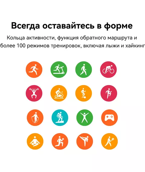 | Список возможностей | Часы поддерживают несколько режимов тренировки, определение падения и экстренное оповещение, отправку уведомлений, голосового помощника и совершение мобильных платежей. В часах предусмотрены приложения для снятия ЭКГ, а также HUAWEI Музыка, HUAWEI MeeTime, функция TruSleep, |