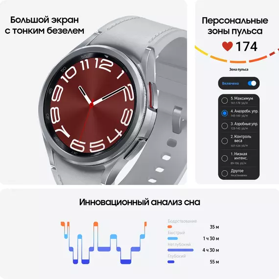 Выглядеть на максимум. Успевать больше. Идти к своей мечте. Это становится реальностью с нашим самым большим на сегодняшний день экраном в Galaxy Watch, индивидуальными программами тренировок и анализом качества сна, а также эстетикой, неподвластной времени.