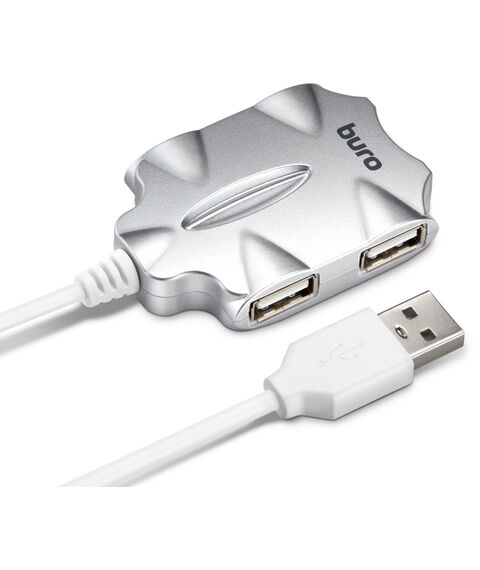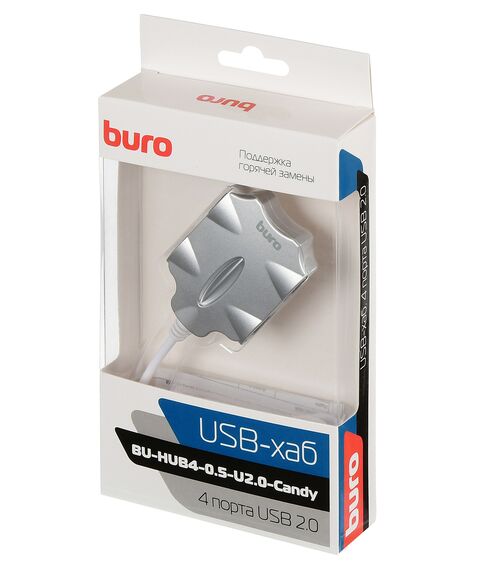 Разветвитель BURO BU-HUB4-0.5-U2.0-Candy 4 порта USB 2.0, серебристый