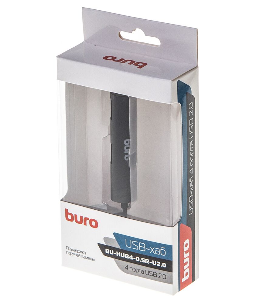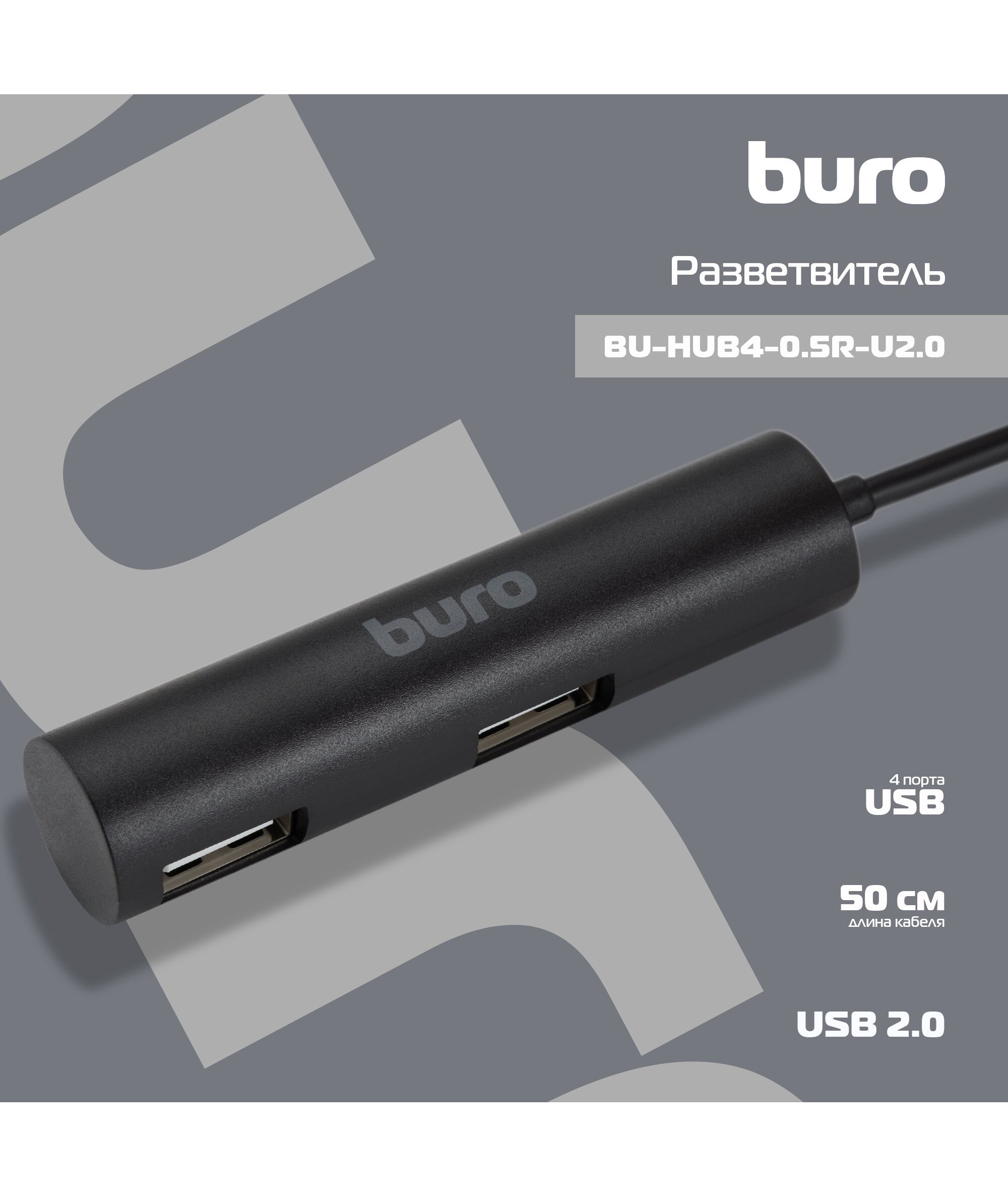 Разветвитель BURO BU-HUB4-0.5R-U2.0 USB 2.0 4порт. черный