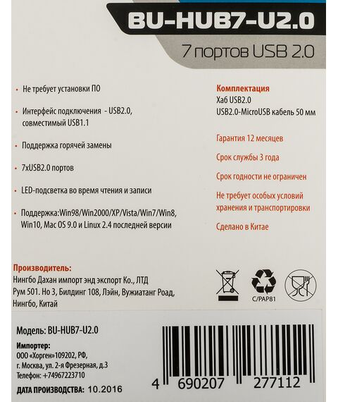 Описание BURO BU-HUB7-U2.0