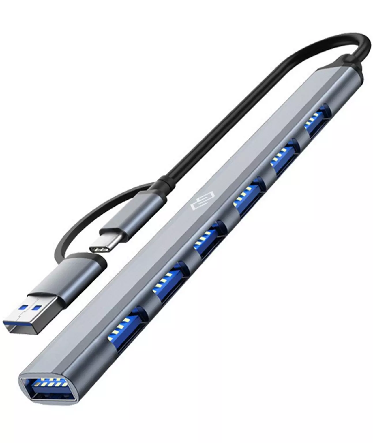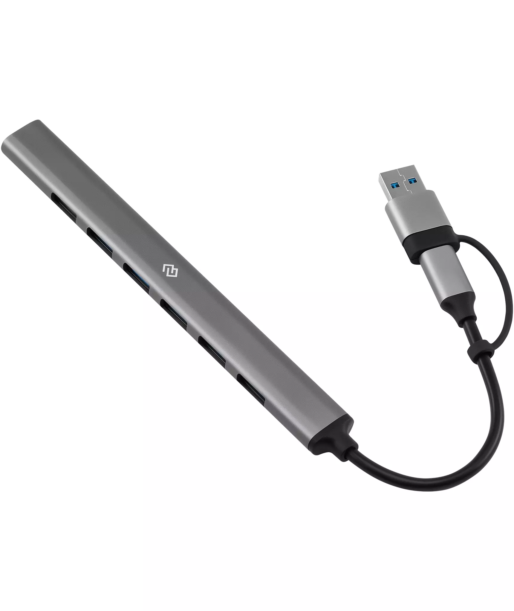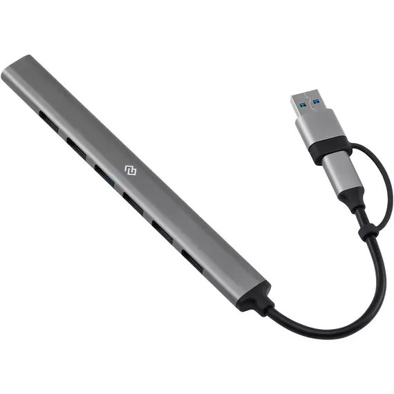 Разветвитель Digma DHB-7USB-AC-2.0 USB-C + USB-A 7порт. серебристый