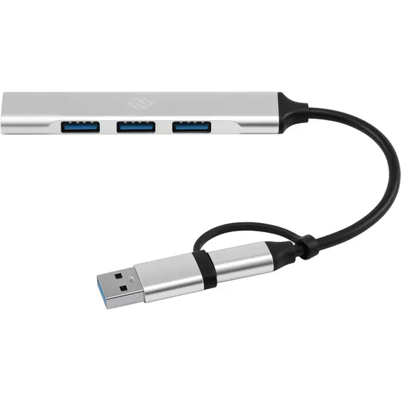 Разветвитель Digma DHUB-4USB-AC-2.0 USB-C + USB-A 4порт. серебристый