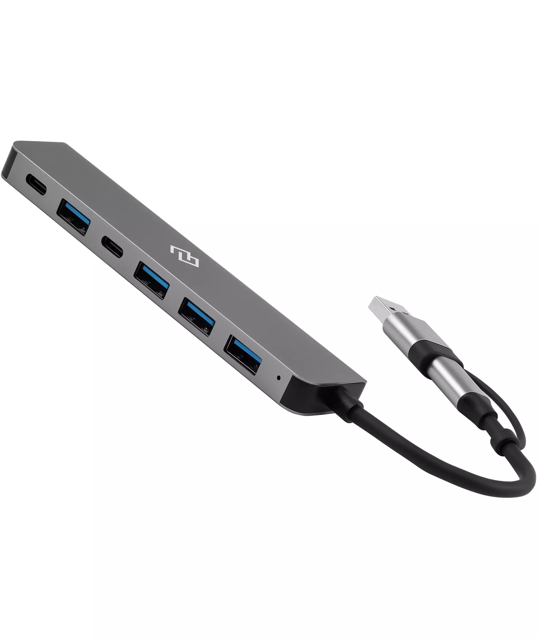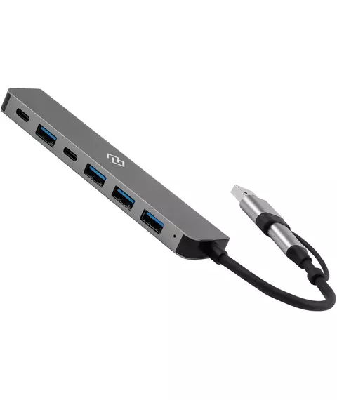 | Особенности | Подключение USB Type-C+USB-A . 7 портов - 1xUSB 3.0, 4xUSB 2.0, 1xUSB-C 2.0, 1xUSB-C для доп питания |