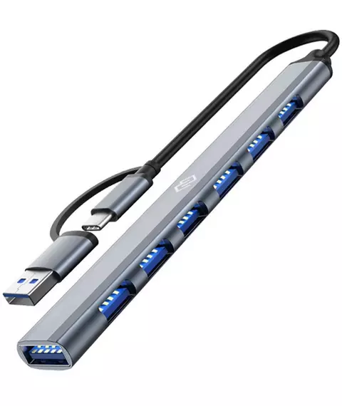 Разветвитель Digma DHUB-7USB-AC-3.0 USB-C + USB-A 7порт. серебристый