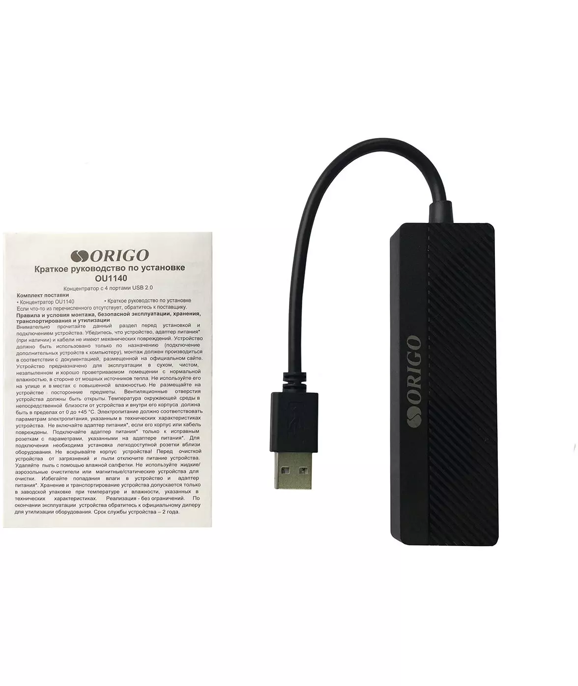 Разветвитель USB 2.0 ORIGO OU1140/A1A 4порт. черный