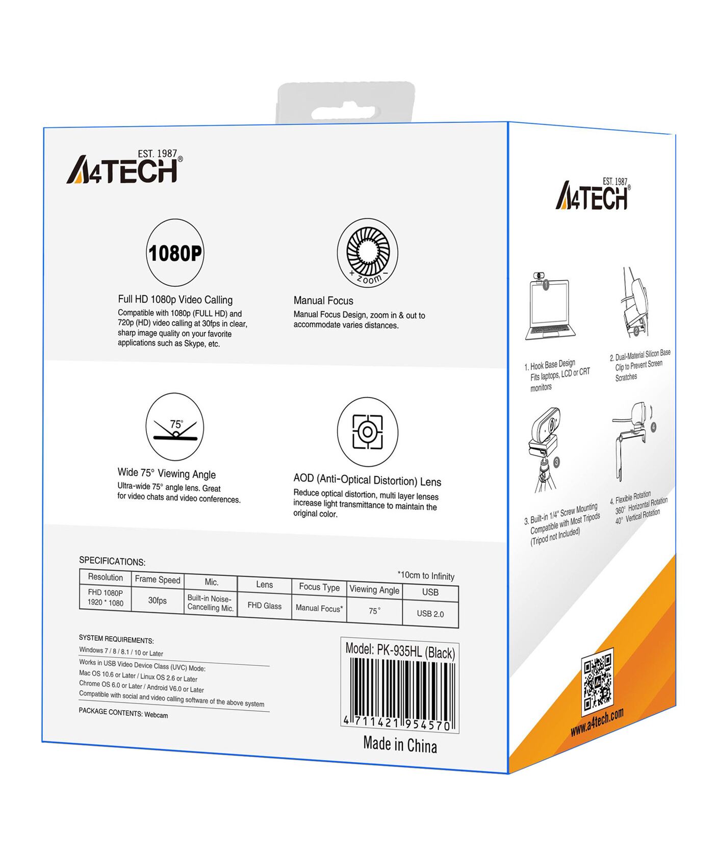 Камера Web A4-Tech PK-935HL черный 2Mpix (1920x1080) USB2.0 с микрофоном