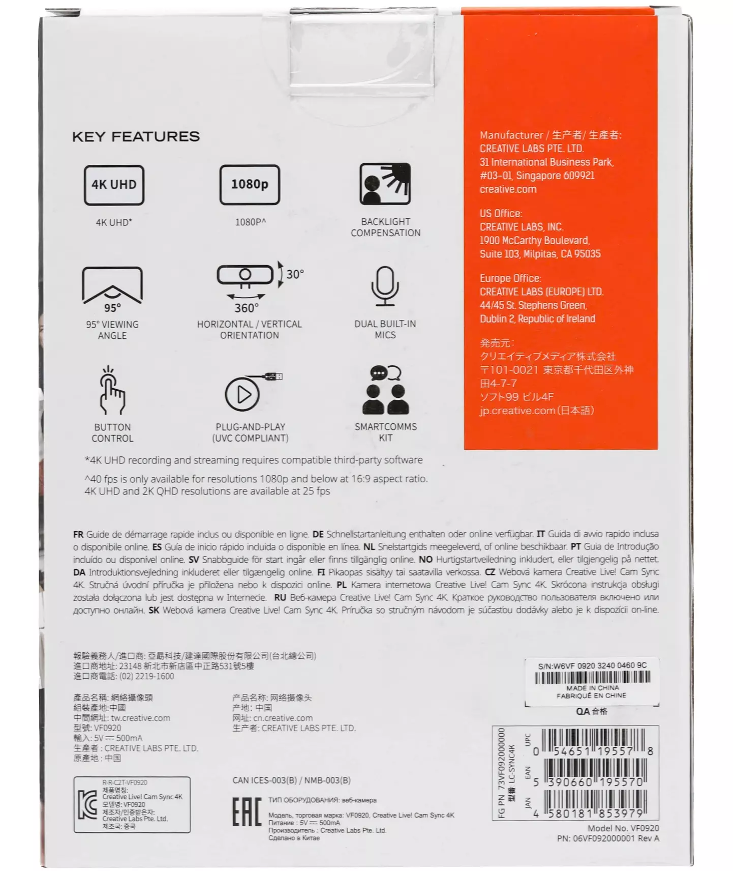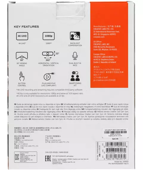 Описание Creative Live! Cam 4K VF0990 [73VF099000000]