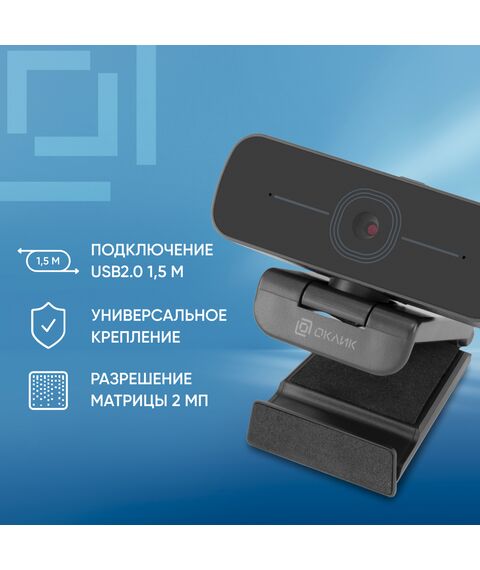 Камера Oklick OK-C001FH черный 2Mpix (1920x1080) USB2.0 с микрофоном RTL