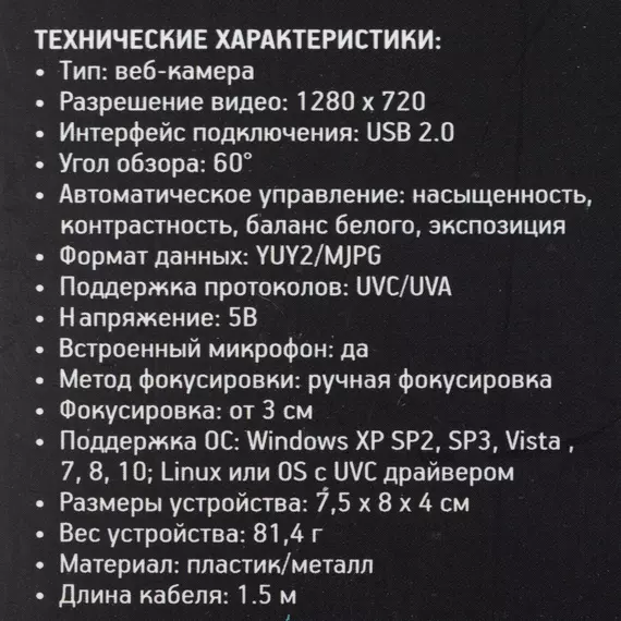 Камера Oklick OK-C012HD черный 1Mpix (1280x720) USB2.0 с микрофоном