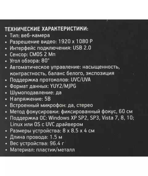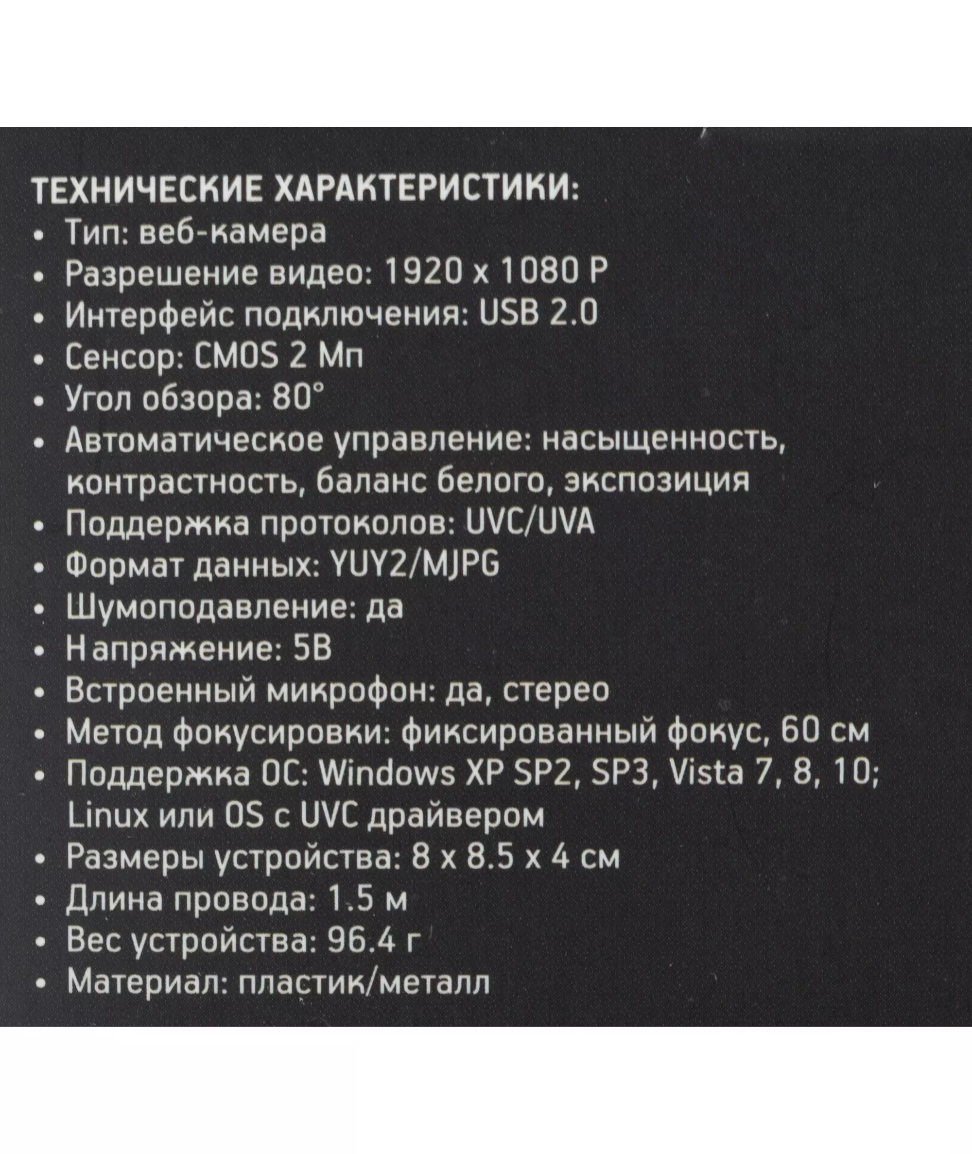 Камера Oklick OK-C013FH черный 2Mpix (1920x1080) USB2.0 с микрофоном RTL