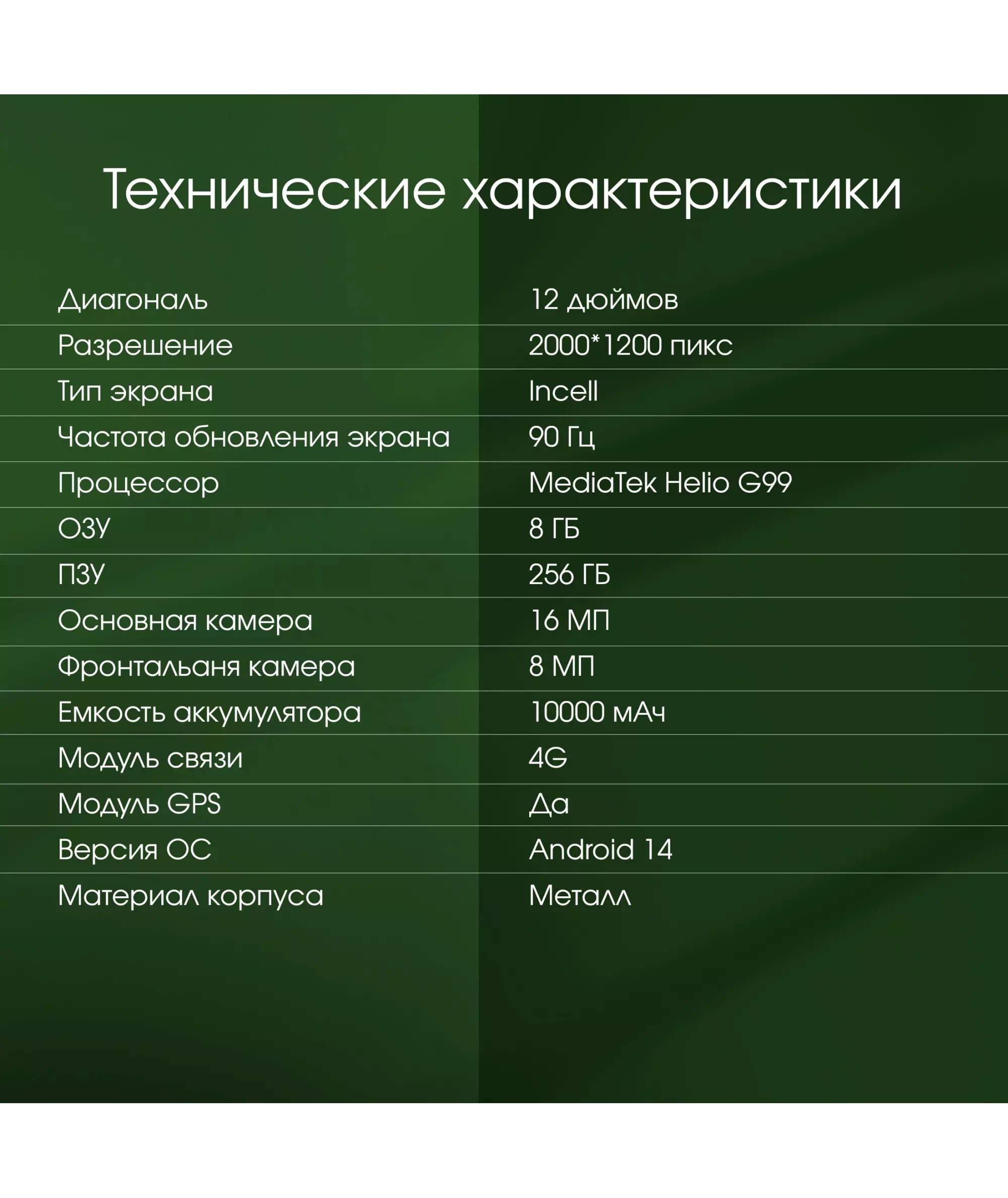 Планшет Digma Pro Empire G99 (2.2) 8C RAM8Gb ROM256Gb 12" In-Cell 2000x1200 4G 2Sim Android 14 серый 16Mpix 8Mpix BT WiFi microSD 2Tb 10000mAh 1250hrs [TA3E2M01]
