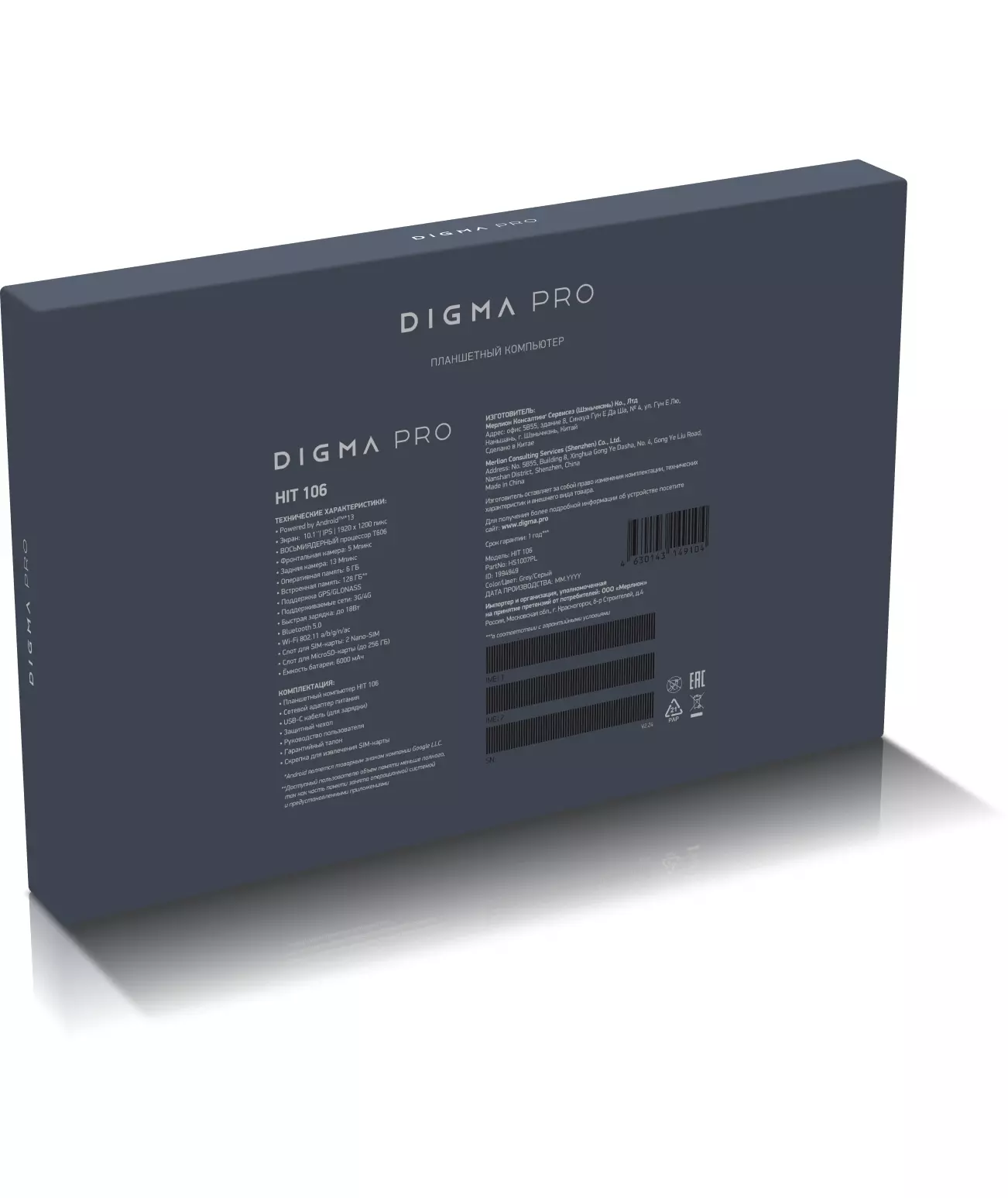 Планшет Digma Pro HIT 106 T606 (1.6) 8C RAM6Gb ROM128Gb 10.1" IPS 1920x1200 4G 2Sim Android 13 серый 13Mpix 5Mpix BT WiFi microSD 1Tb 6000mAh 360hrs [HS1007PL]