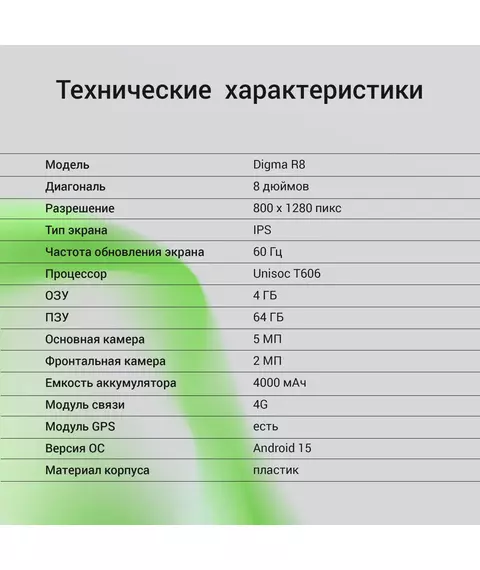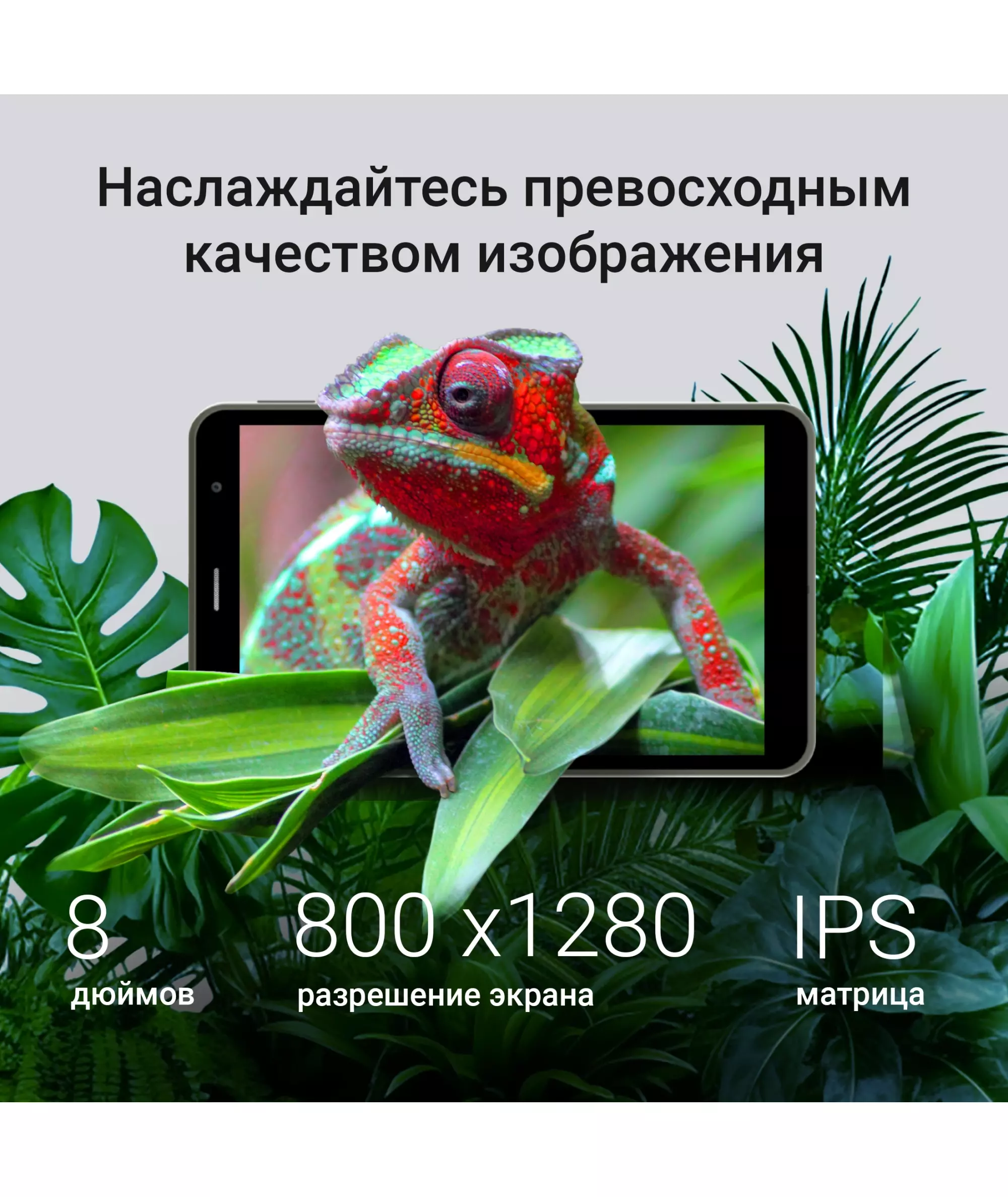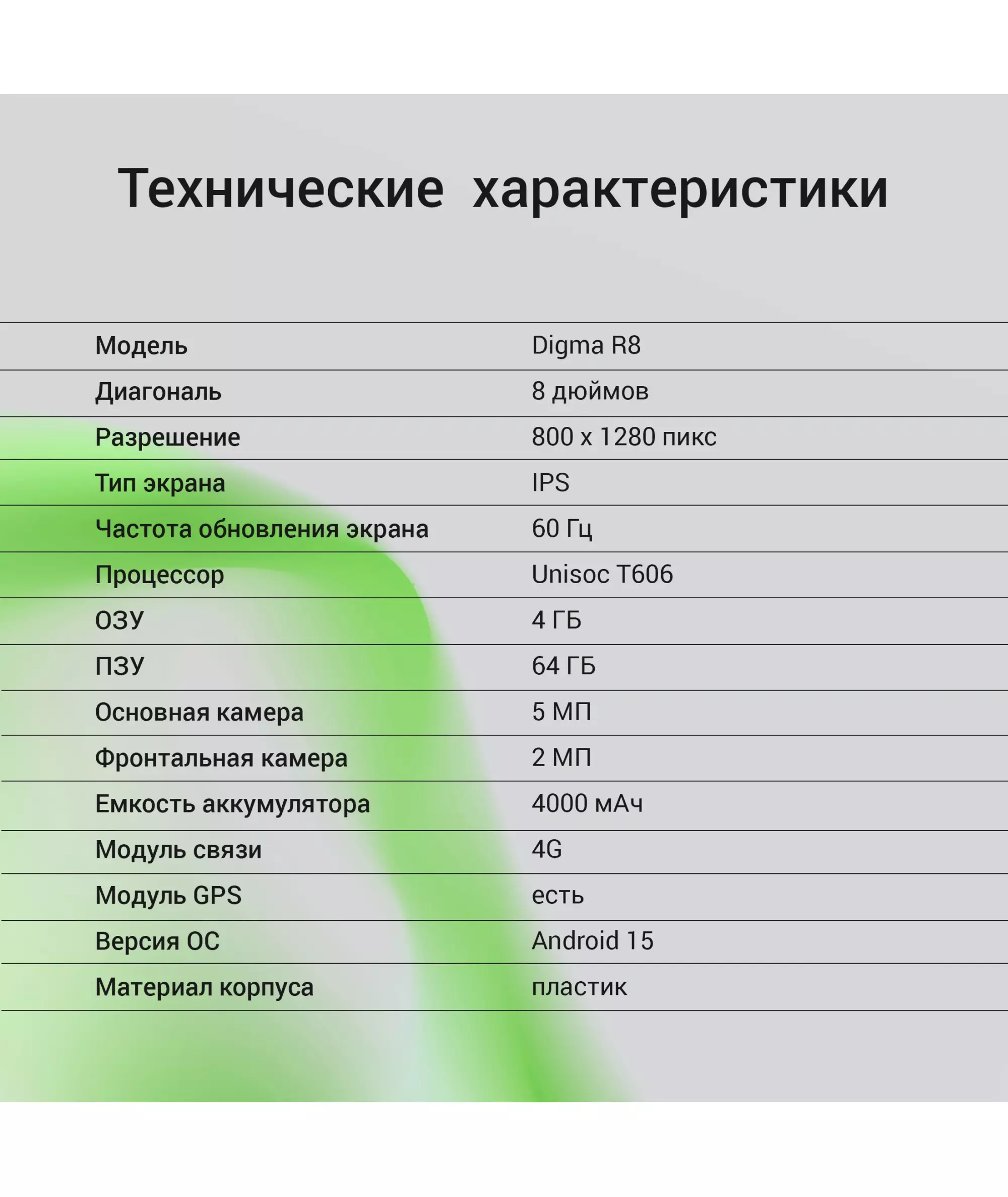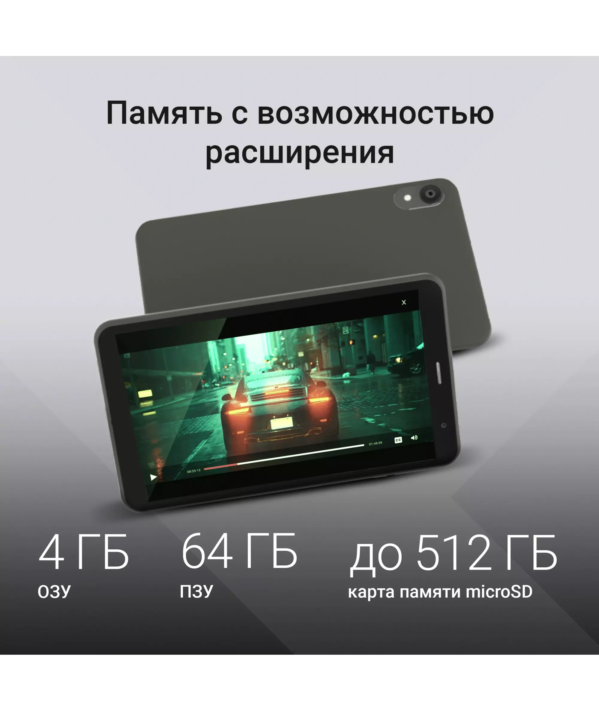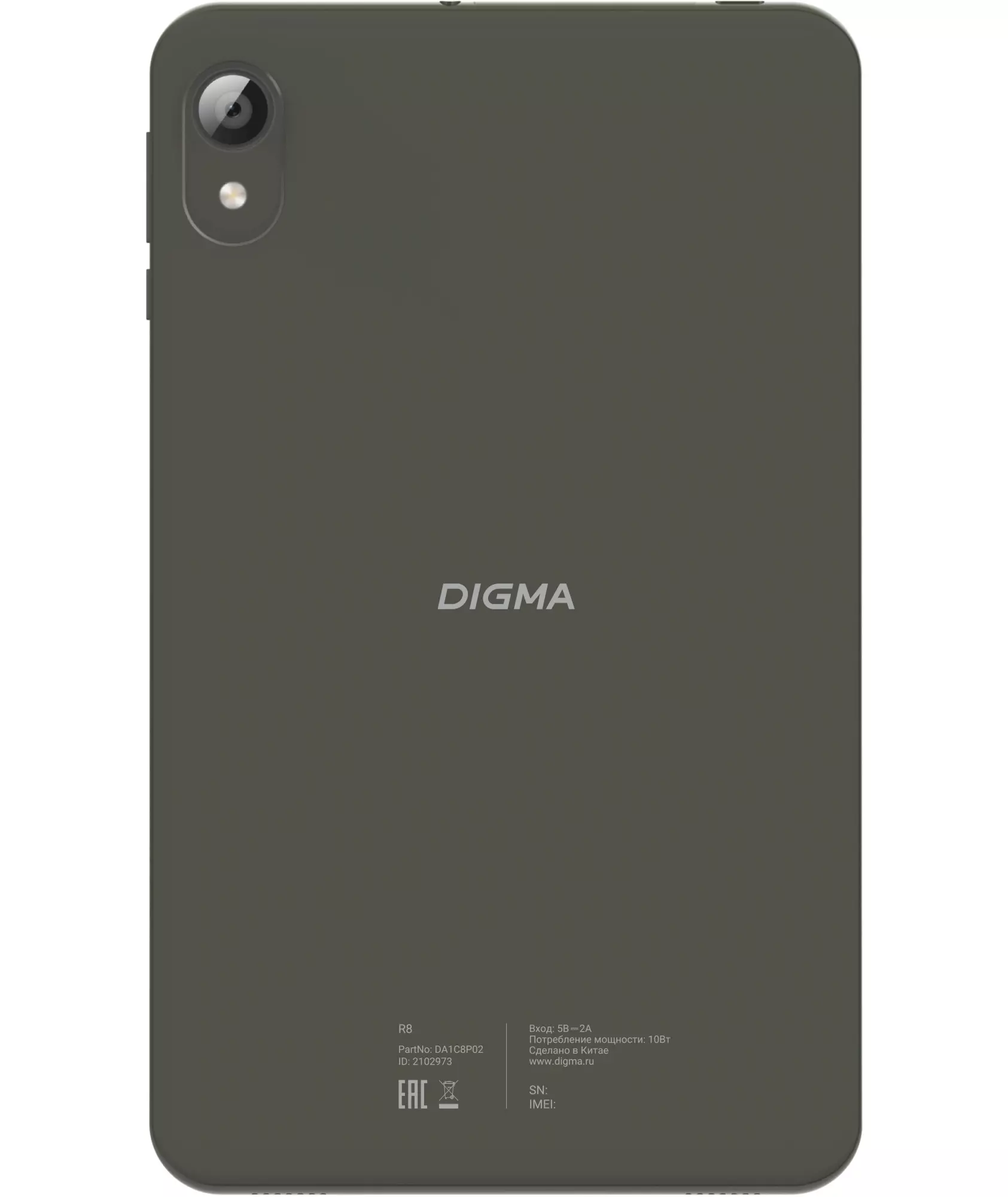 Планшет Digma R8 T606 (1.6) 8C RAM4Gb ROM64Gb 8" IPS 1280x800 4G Android 15 темно-серый 5Mpix 2Mpix BT WiFi microSD 512Gb 4000mAh 168hrs [DA1C8P02]