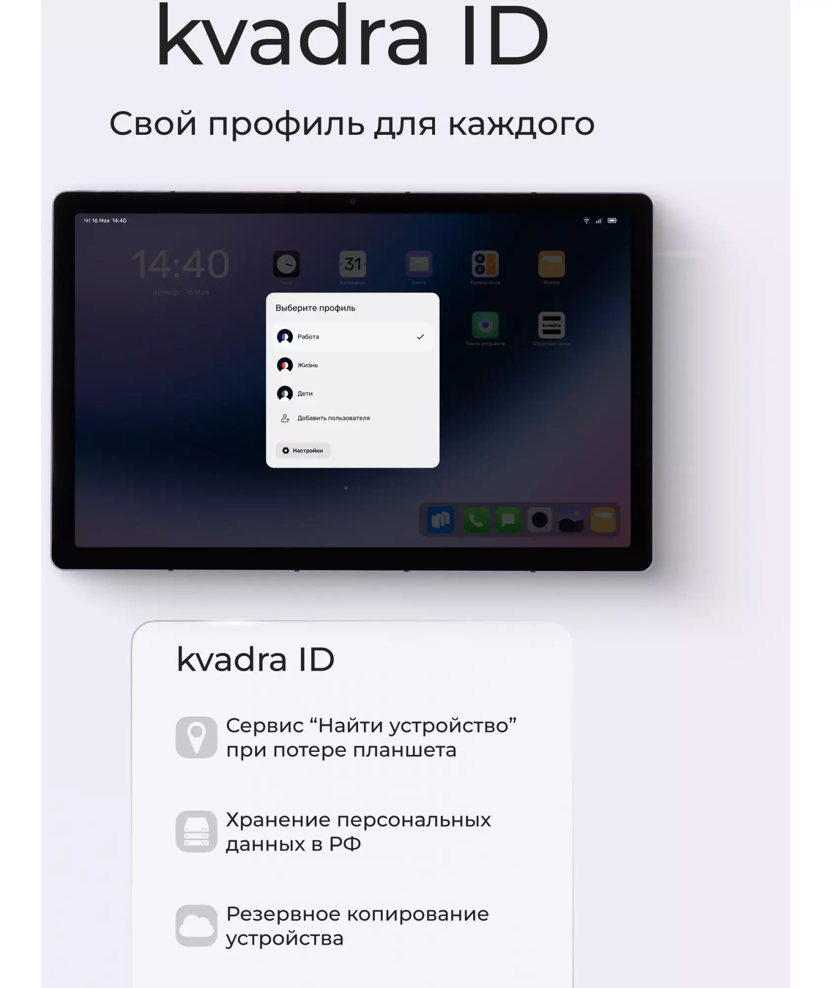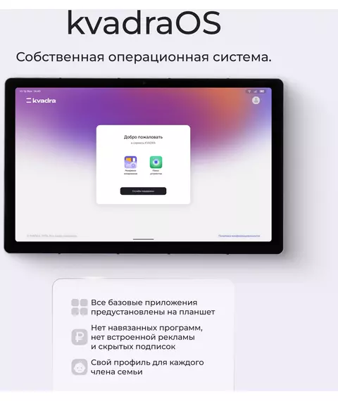 Планшет Kvadra TS11.02-2111-31 (2.4) 8C RAM6Gb ROM128Gb 10.95" IPS 2000x1200 OS фиолетовый 13Mpix 5Mpix BT WiFi microSD 256Gb 9000mAh 8hr [Y23T01PO2412R_E8E573]